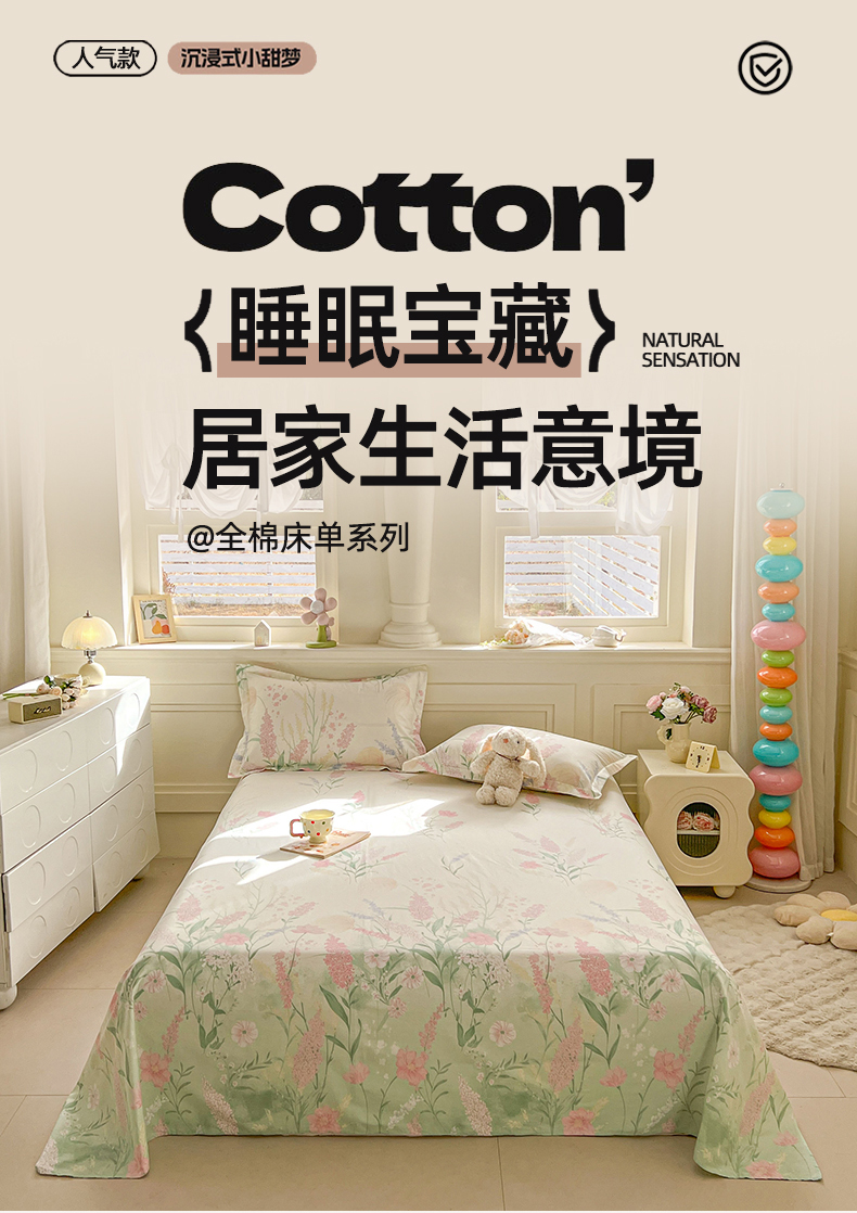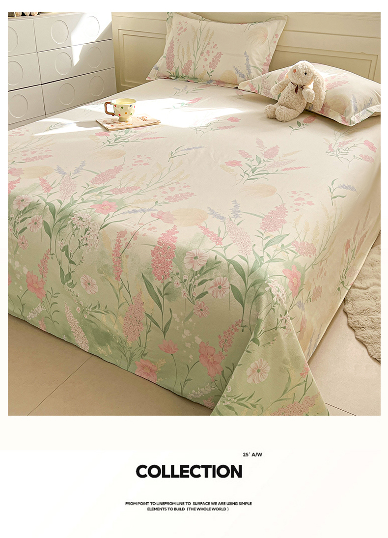• 91家纺网 家纺一手货源 找家纺 名优家纺 2026新款12868全棉小清新印花四件套单品系列-单床单 谣谣玉穗