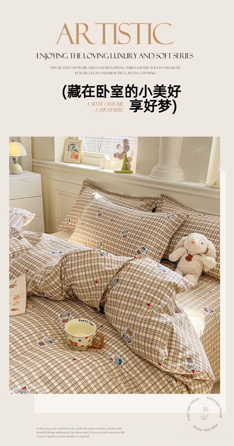当前位置: 91家纺网 > 商品网购 > 床品套件 > 四件套 > 全棉普通四件套 > 名优家纺 2026新款12868全棉小清新印花四件套单品系列-四件套 帽子比熊