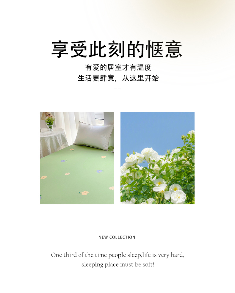 商品名称:艾迪尚家纺 2026新款133X76宽幅全棉纯棉印花单品床笠 床笠单件 雅卉—绿