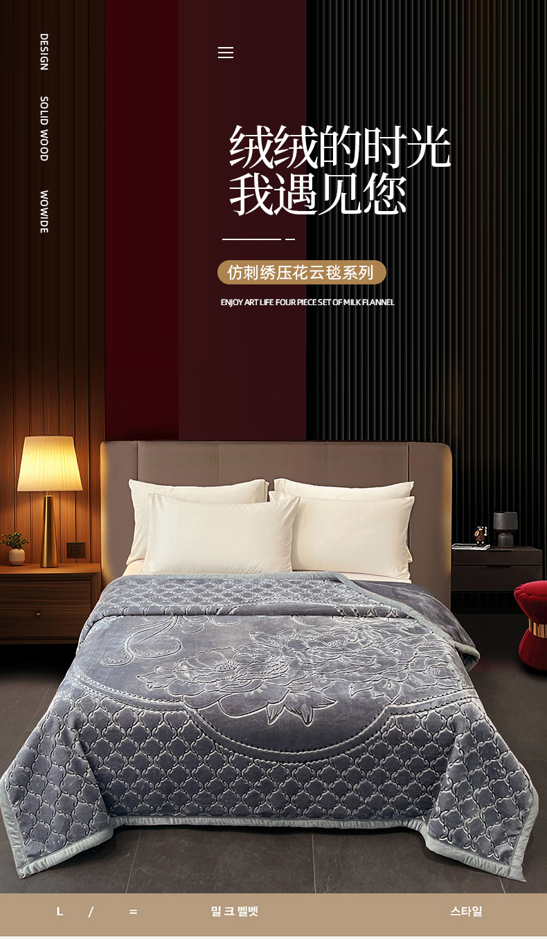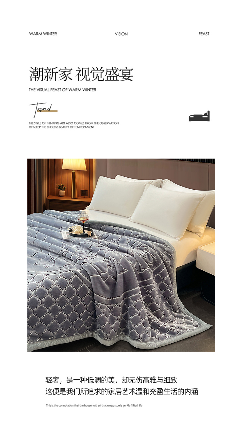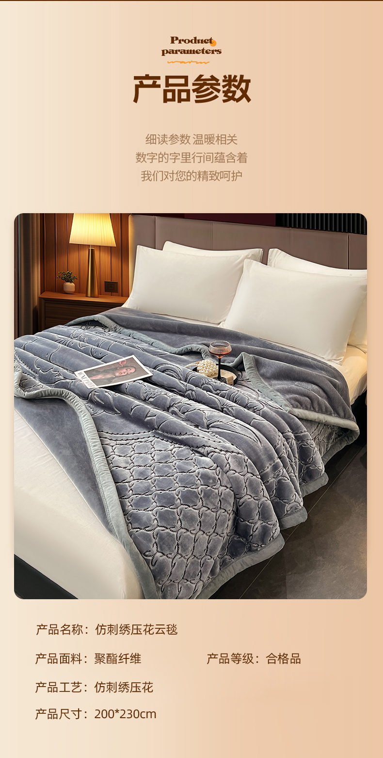 商品名称:凯轩毛毯网销专供 2026新款仿刺绣双层加厚压花云毯 深灰色