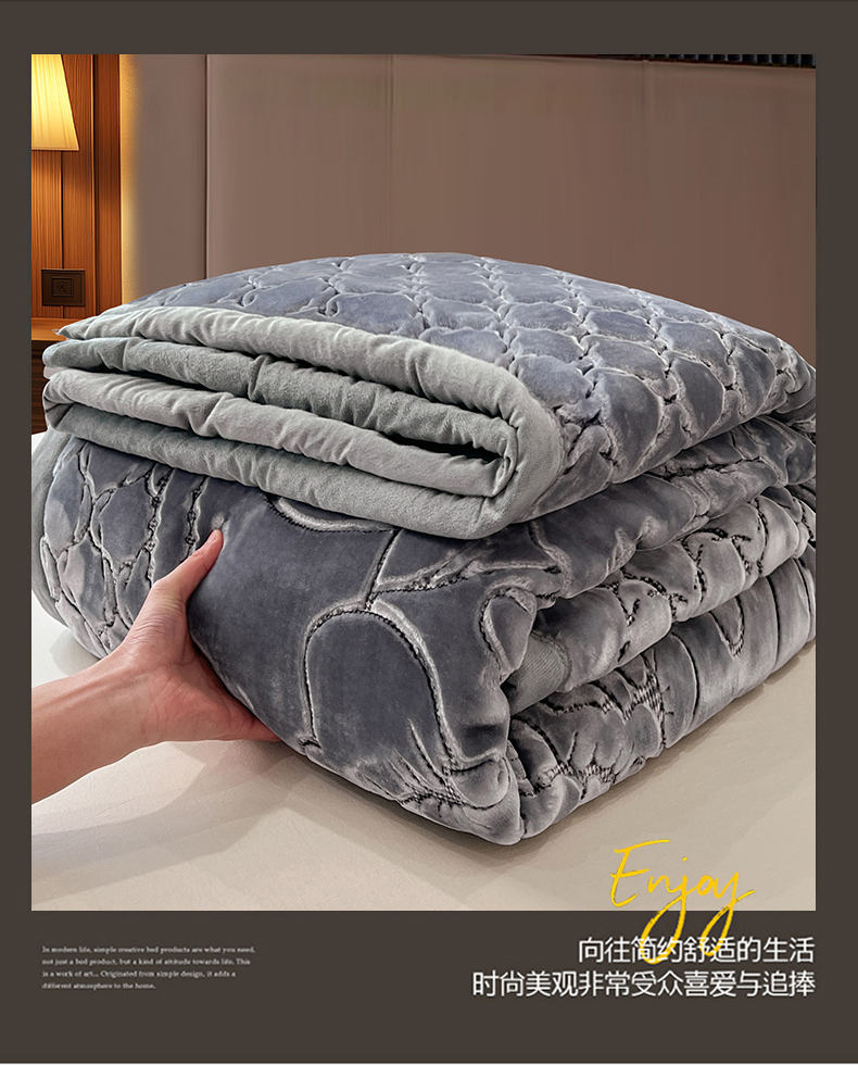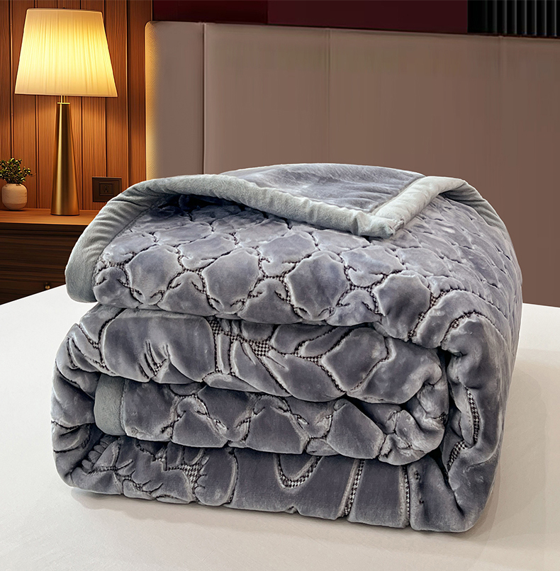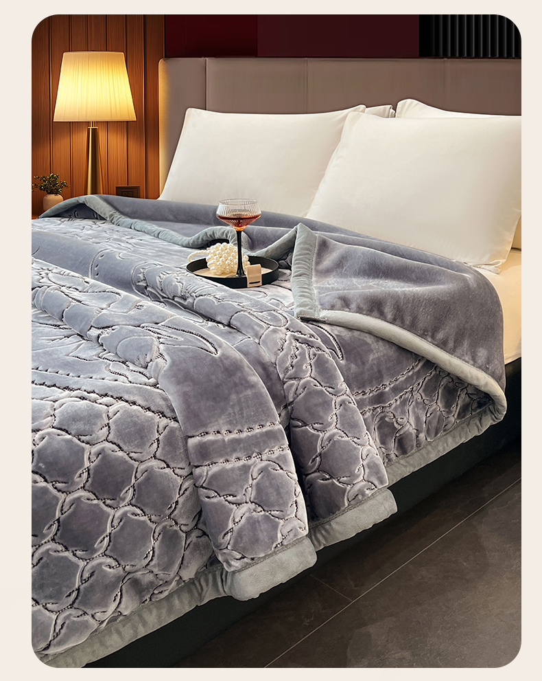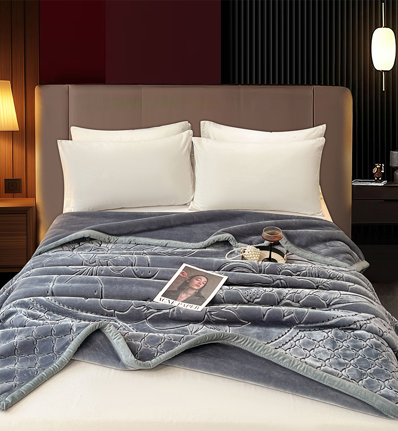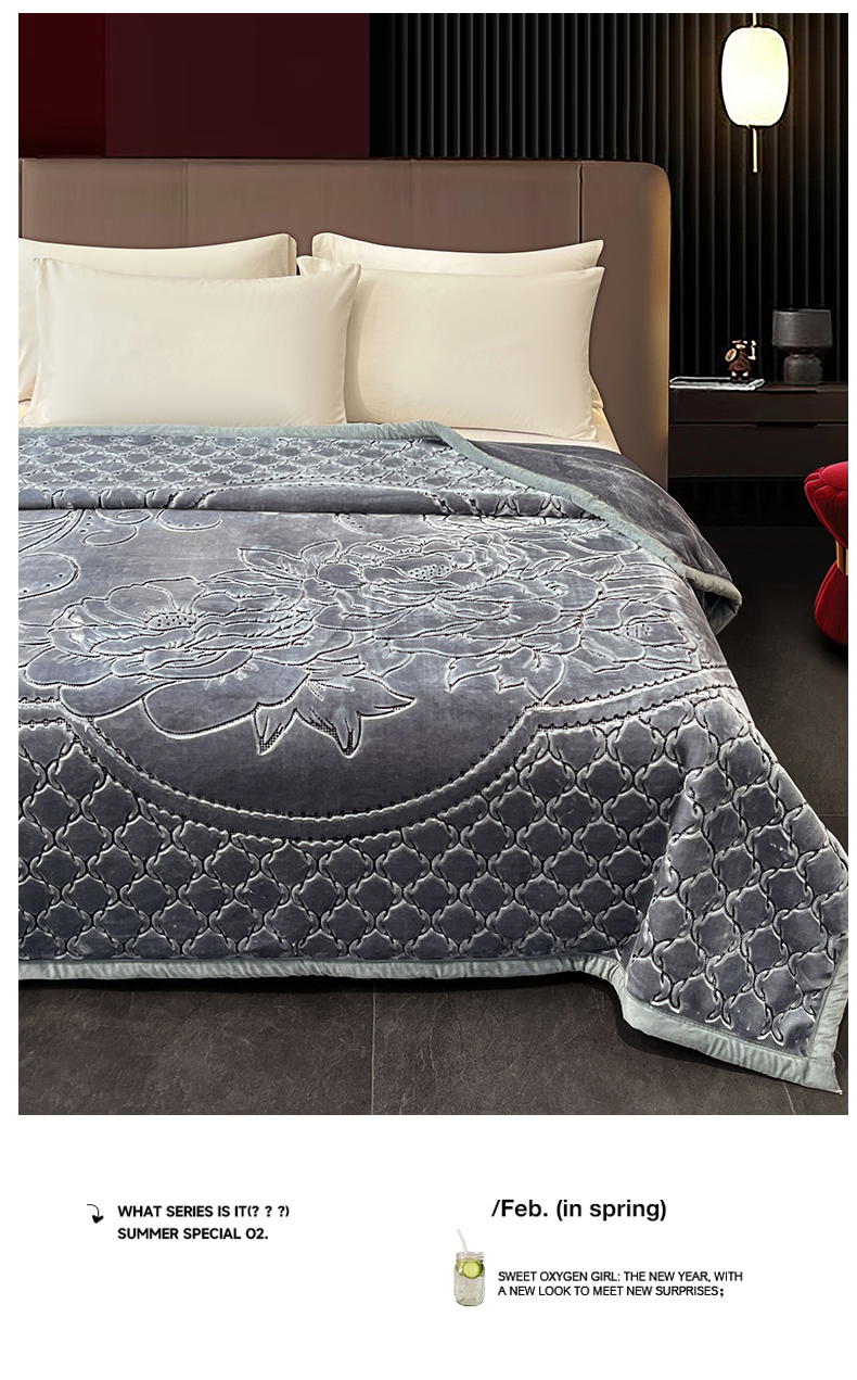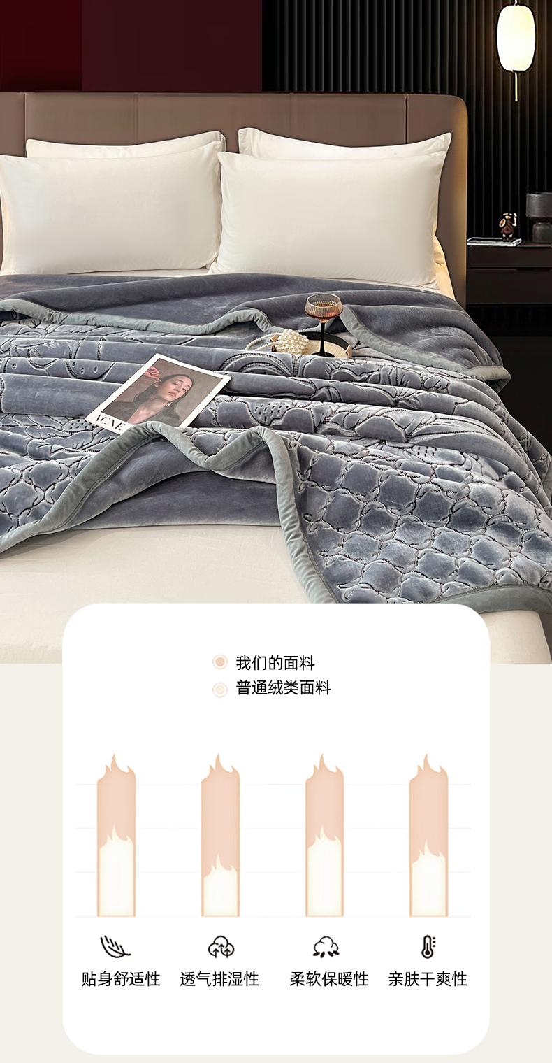 凯轩毛毯网销专供 2026新款仿刺绣双层加厚压花云毯 深灰色