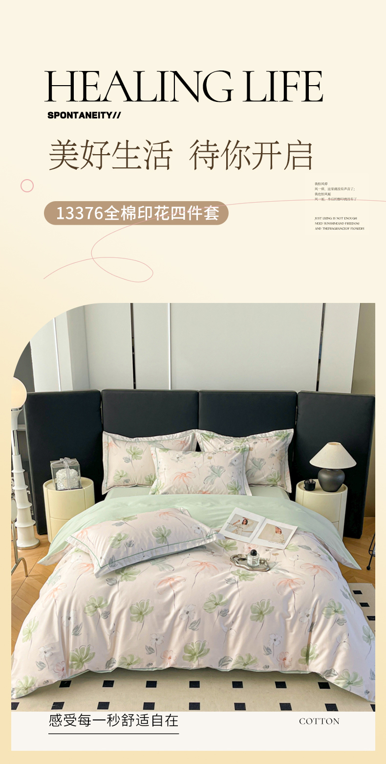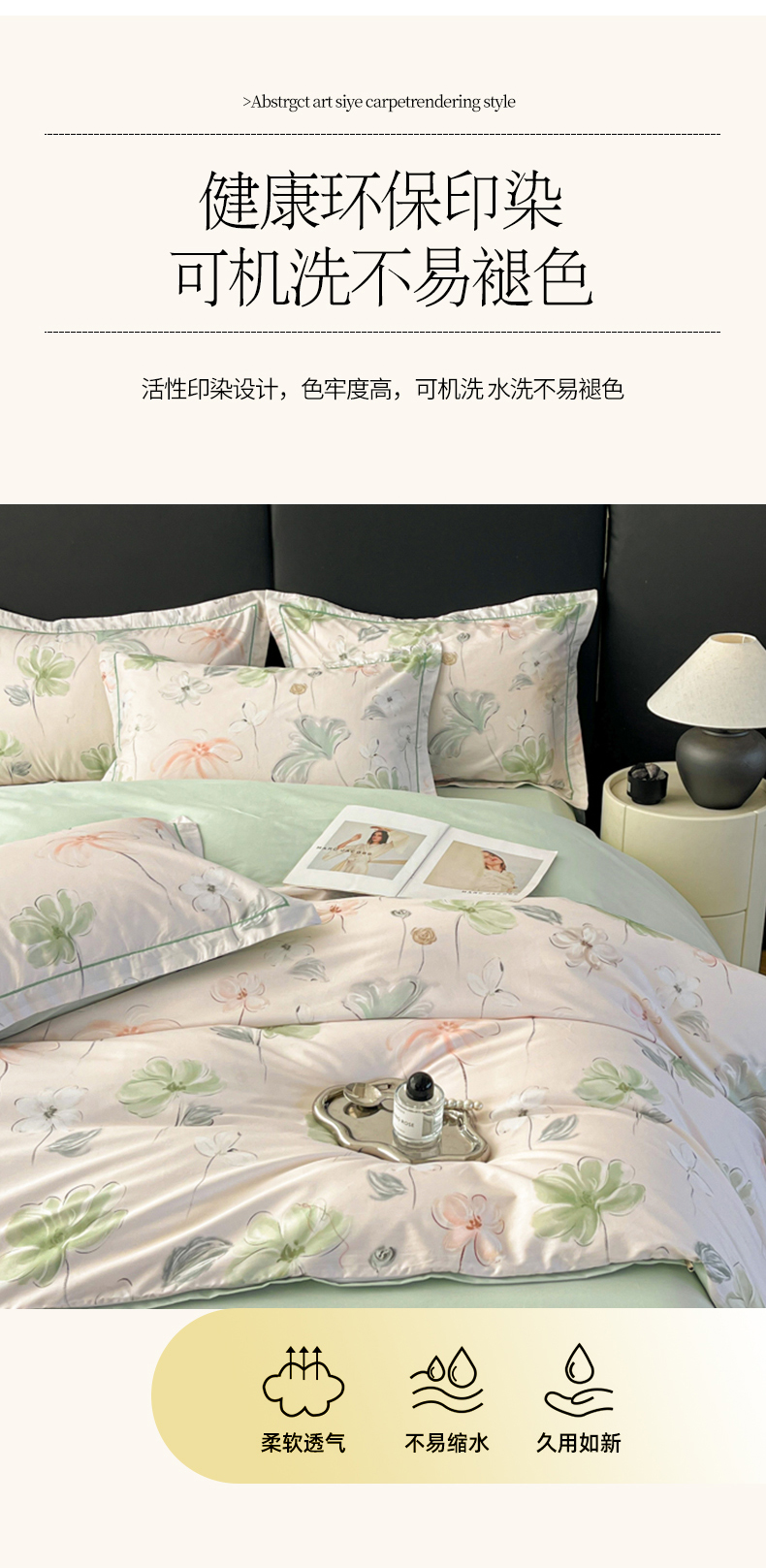 当前位置: 91家纺网 > 商品网购 > 床品套件 > 四件套 > 全棉普通四件套 > 艾迪尚家纺 2026新款133X76宽幅全棉纯棉印花四件套(有单品 可定制) 盛夏-绿