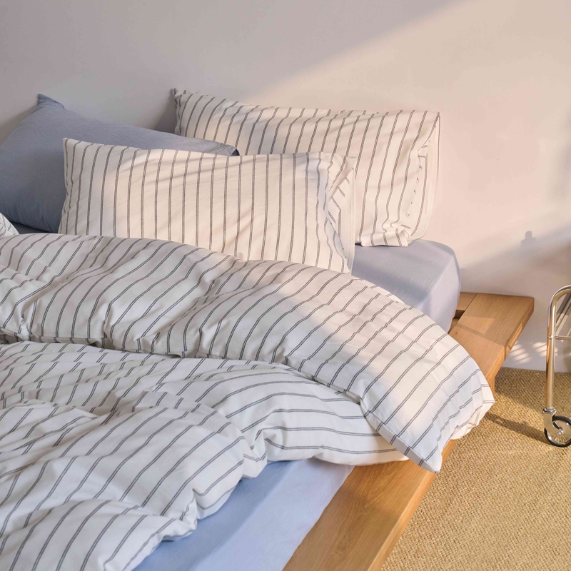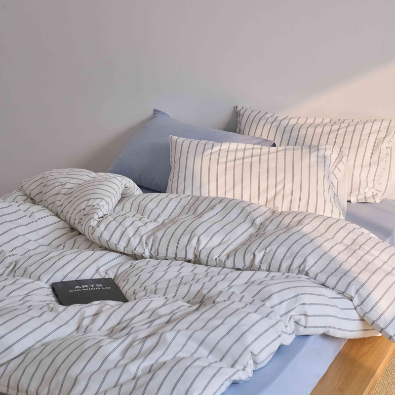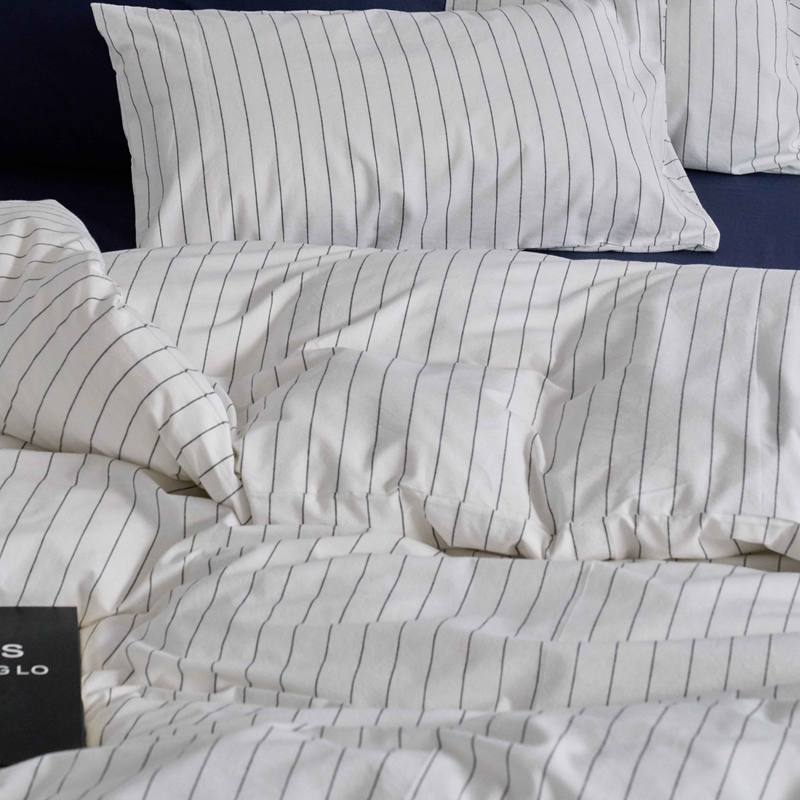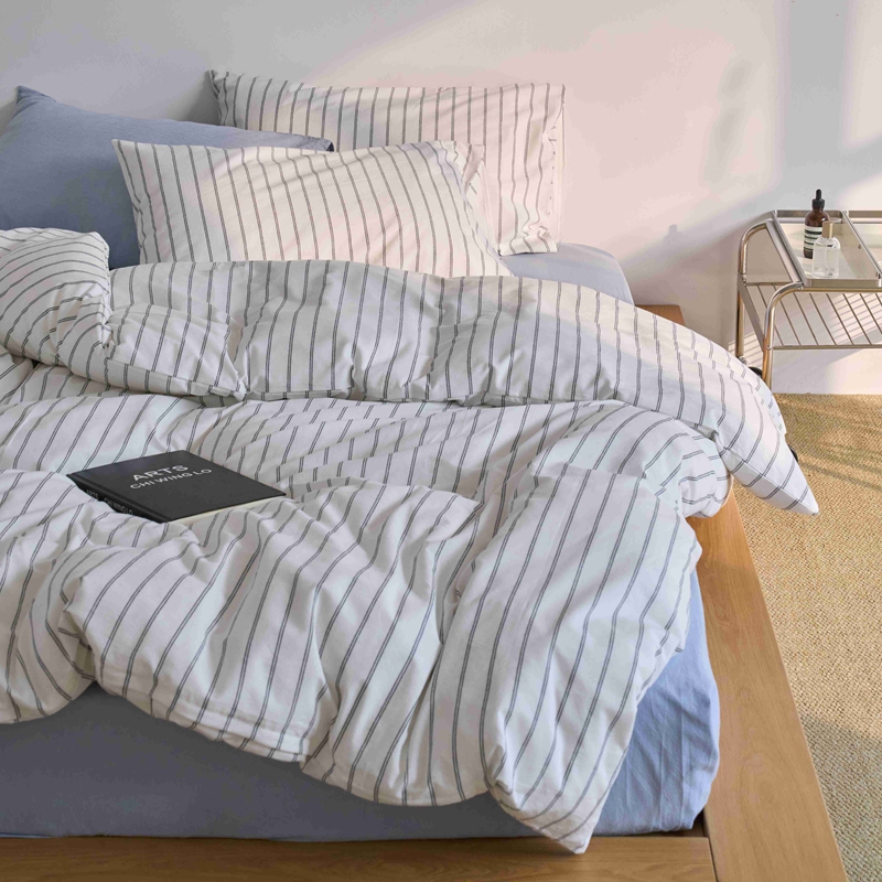 当前位置: 91家纺网 > 商品网购 > 床品套件 > 四件套 > 水洗棉四件套 > 云上 2025新款32s全棉纯棉色织水洗棉韩式白色条纹四件套 岩霜