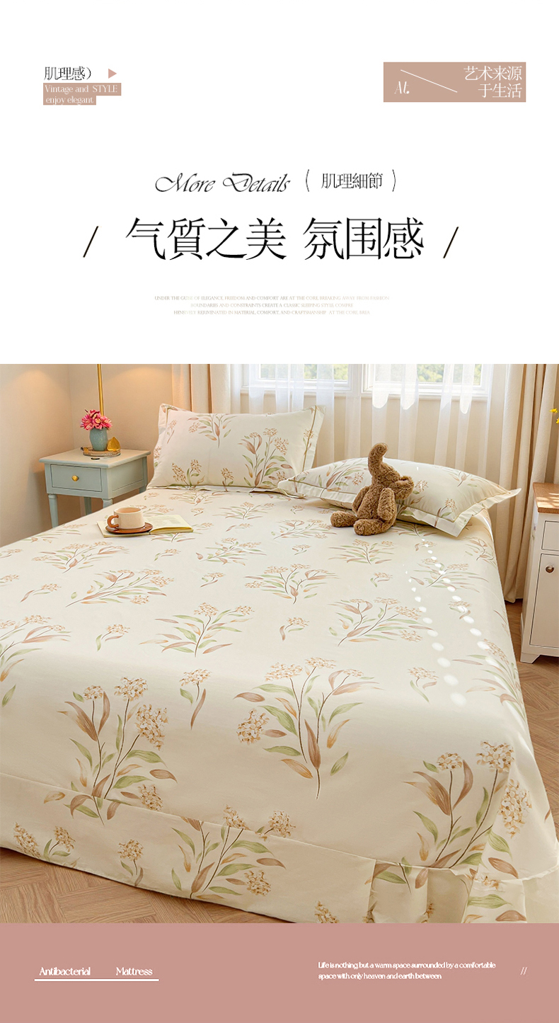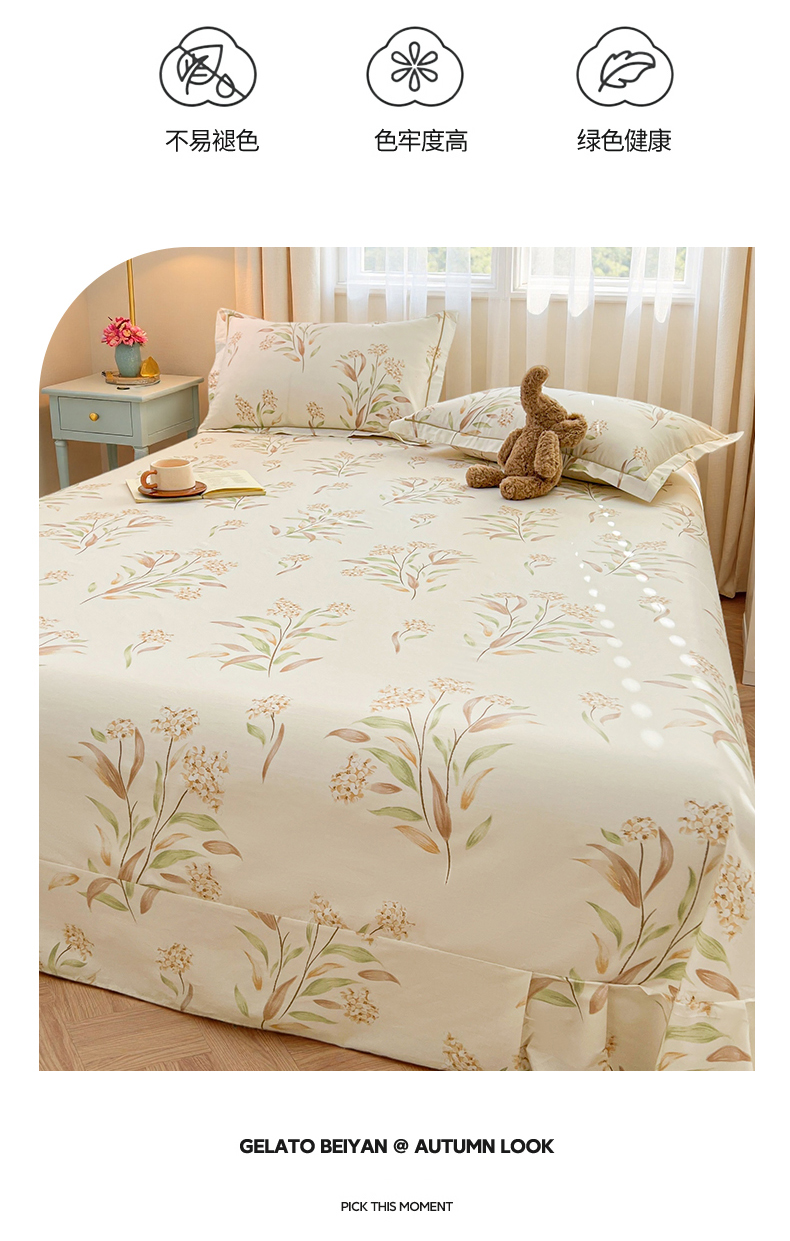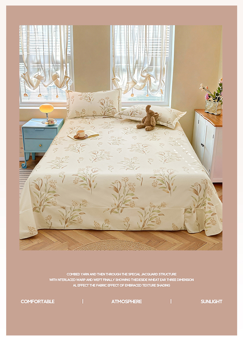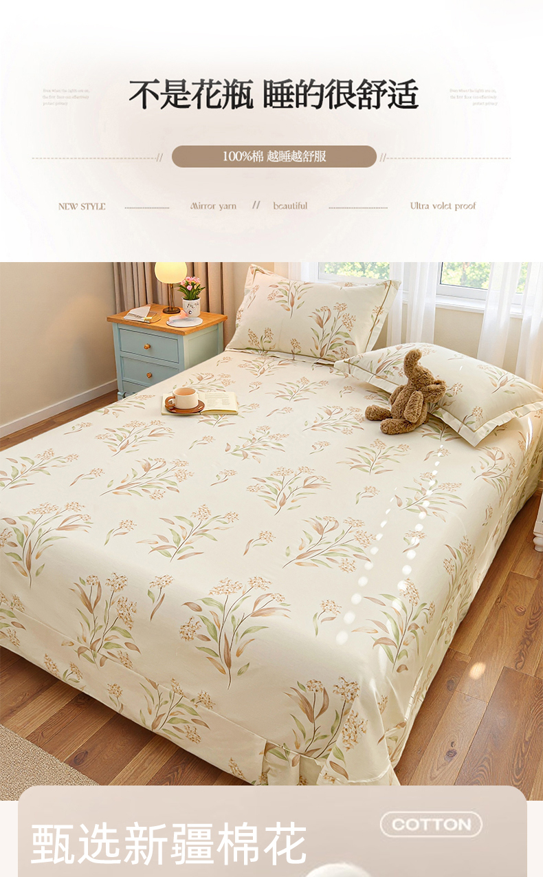 名优家纺 2026新款60S13374高支密全棉印花纯色单床单 森野花簇-绿