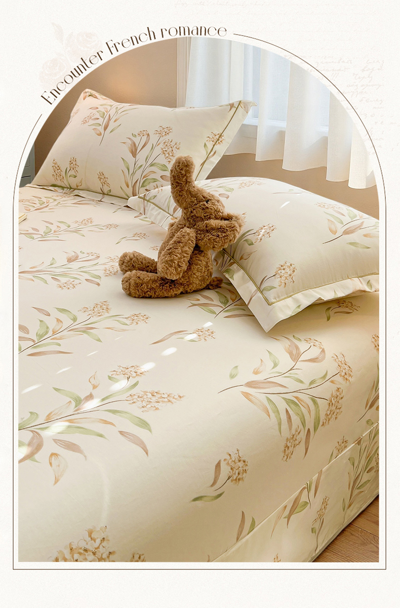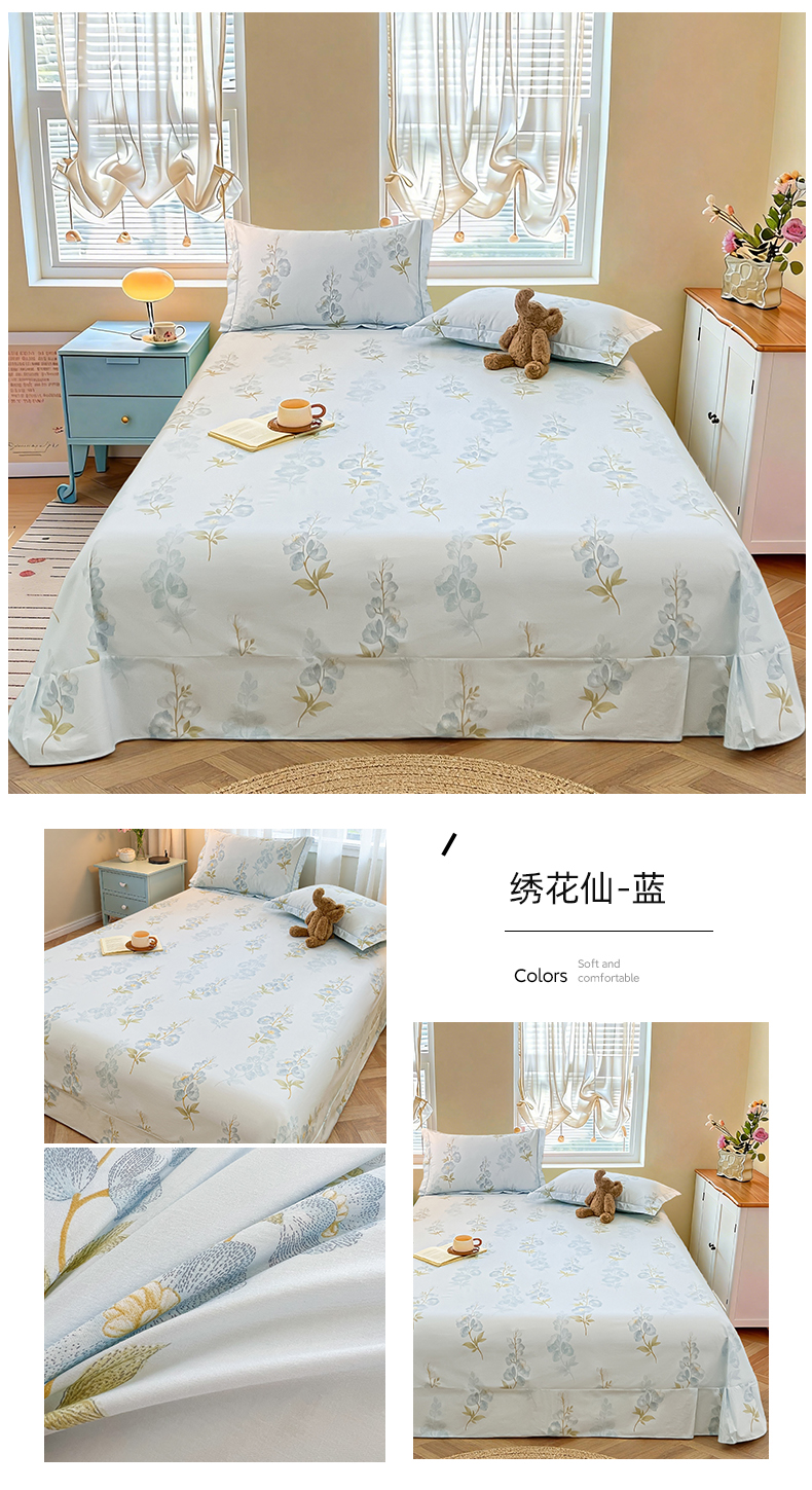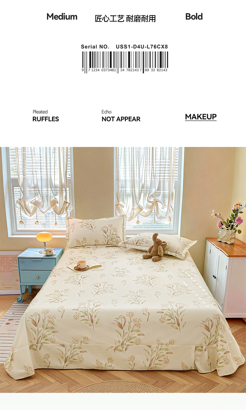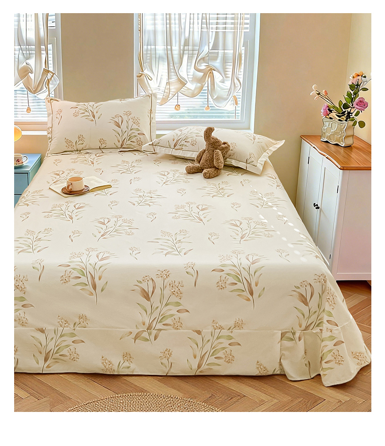 名优家纺 2026新款60S13374高支密全棉印花纯色单床单 森野花簇-绿