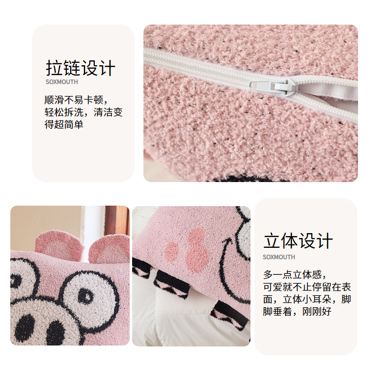 商品名称:暖绵绵家纺 2026新款可爱卡通半边绒抱枕含芯-黎花猪(大号抱枕券后/折后零售价不得低于153元,小号抱枕不得低于99元) 小号黎花猪