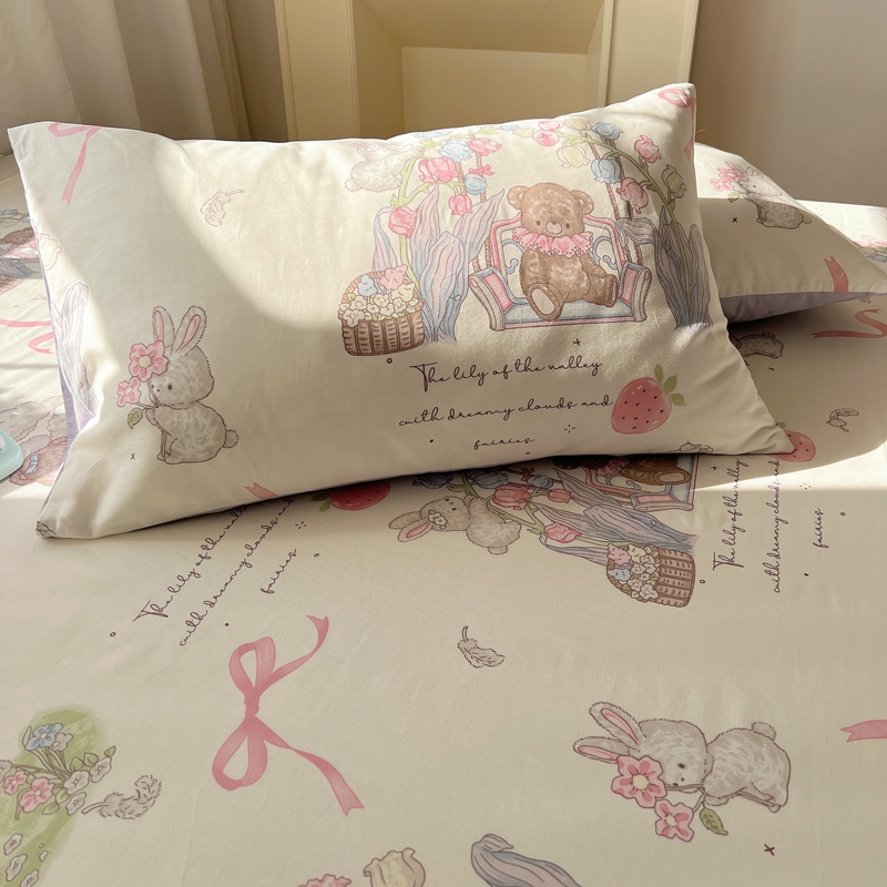 六巷胡同 2026新款40支全棉13070卡通单品枕套 奶油甜心熊