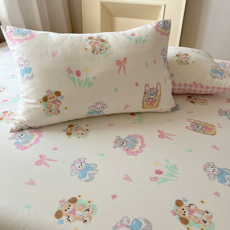 商品名称:六巷胡同 2026新款40支全棉13070卡通单品枕套 奶油甜心熊