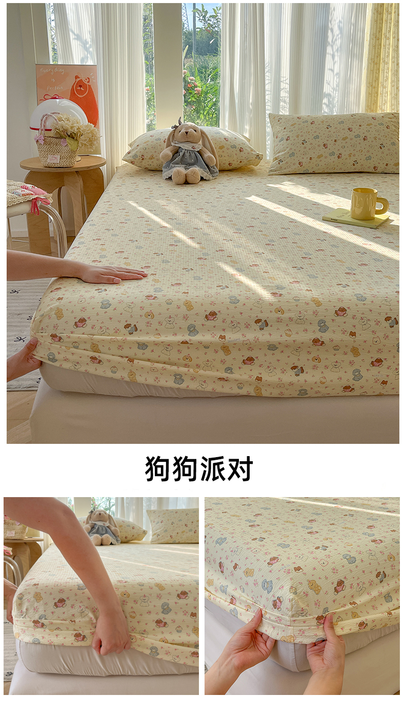 (总)沐芷 2026 【提供买家秀】古法水洗仿棉床笠席梦思床罩床垫防滑床套罩床笠三件套,萌物,甜梦糖豆,巴黎甜心,白月光,豹纹音乐,波点汪语,彩虹跳跳糖,漫游小鱼,萌犬游记,迷你格-黄,迷你格-蓝,奶味圆饼,暖意小熊,星仔,樱桃物语,组合图