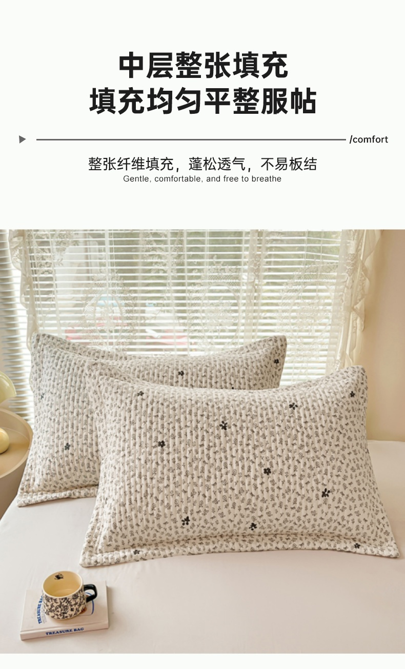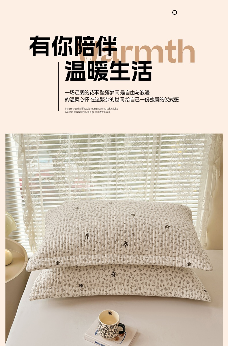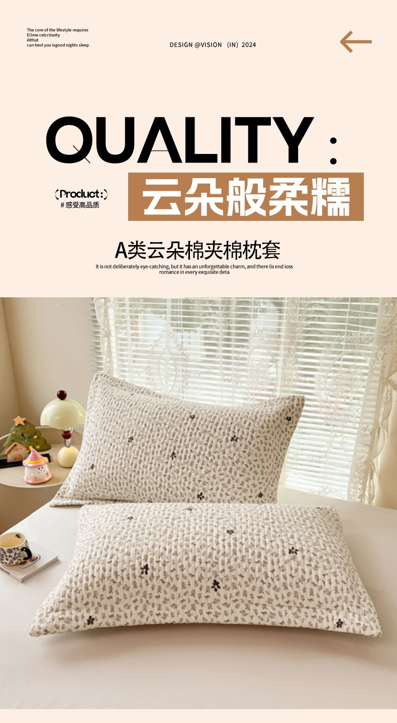 商品名称:圣比熊 2025新款A类云朵棉夹棉枕套宿舍单人一只装枕芯内胆套-单人枕套 花无意(压线夹棉)