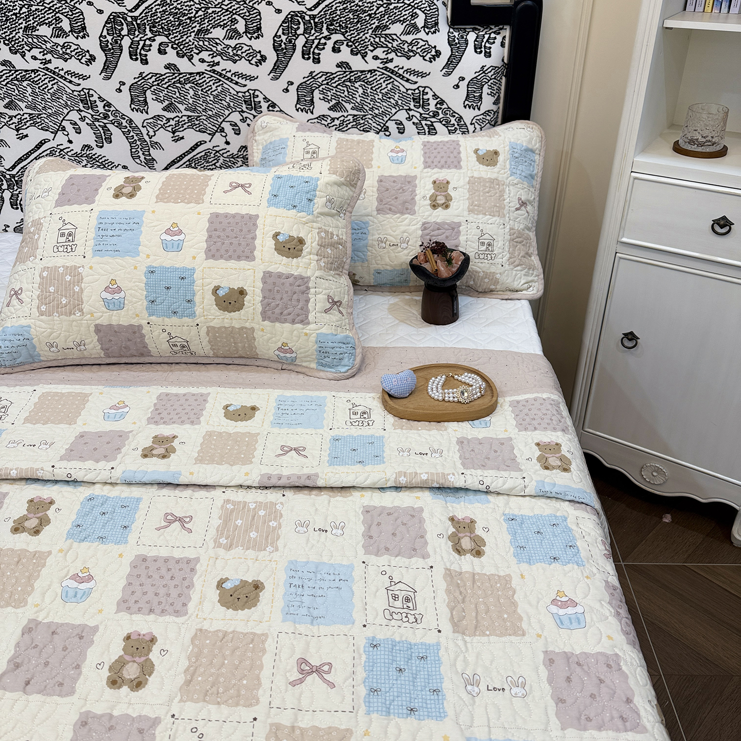 商品名称:床盖工厂店 2025新款双面全棉小包边床盖三件套 淡梨语