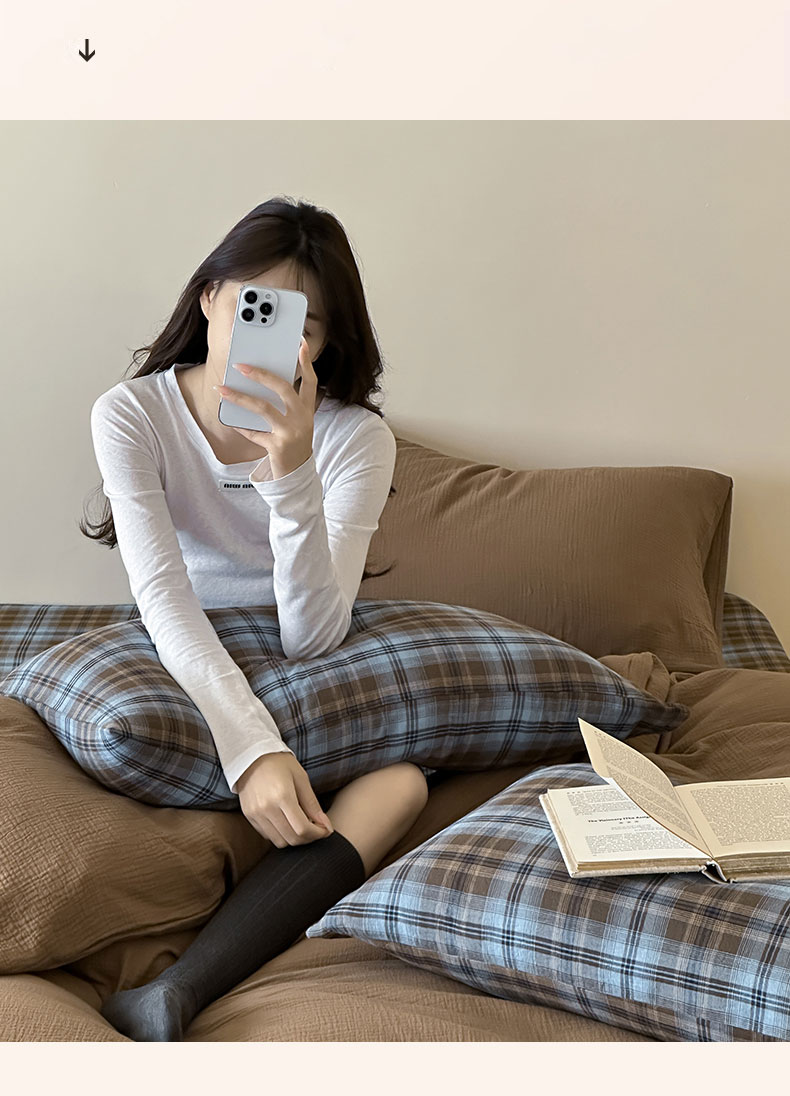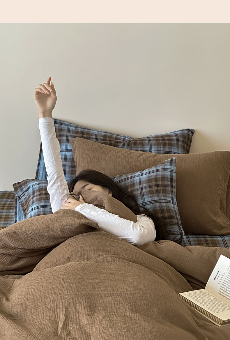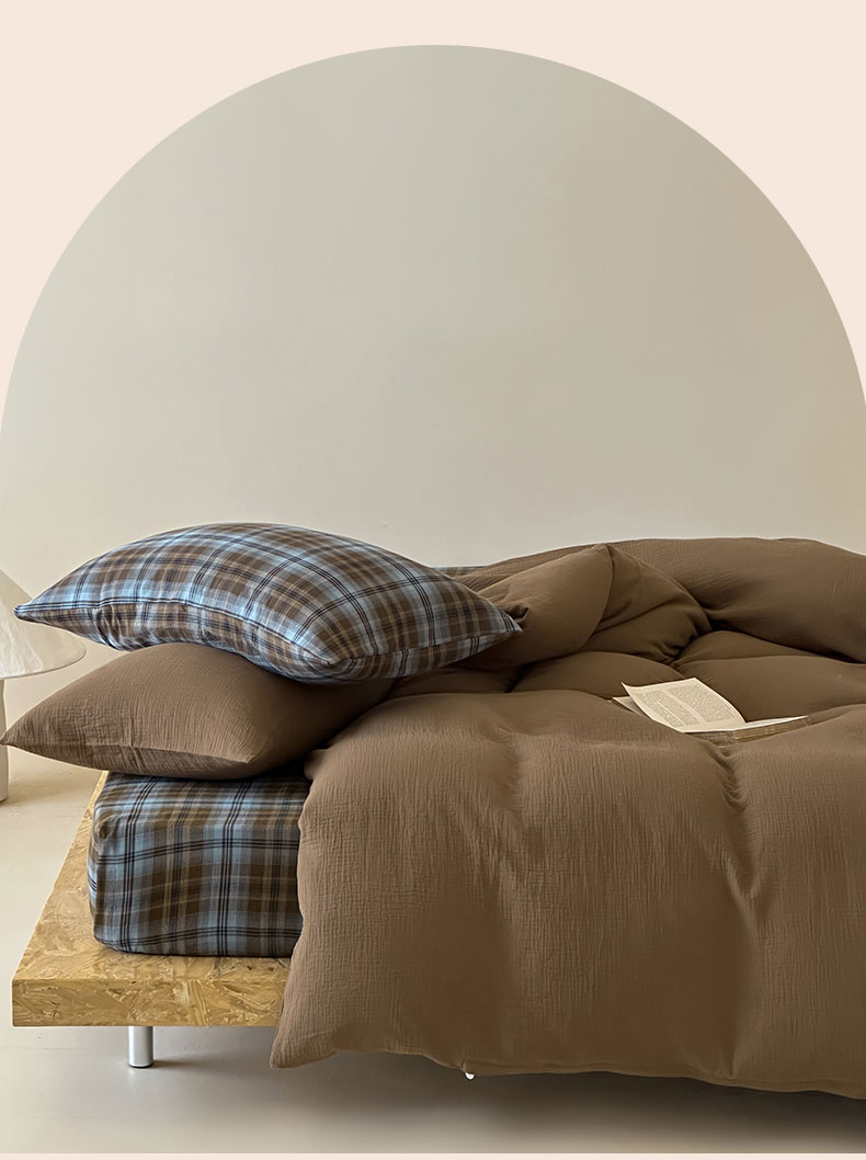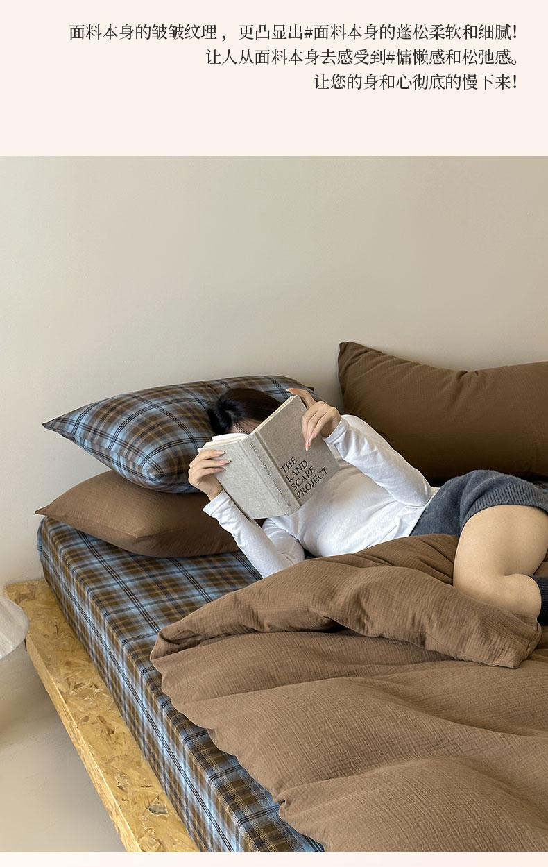山舍家居 2026新款全棉色织双层皱皱纱色织格子皱纱纯色混搭系列四件套 愈野