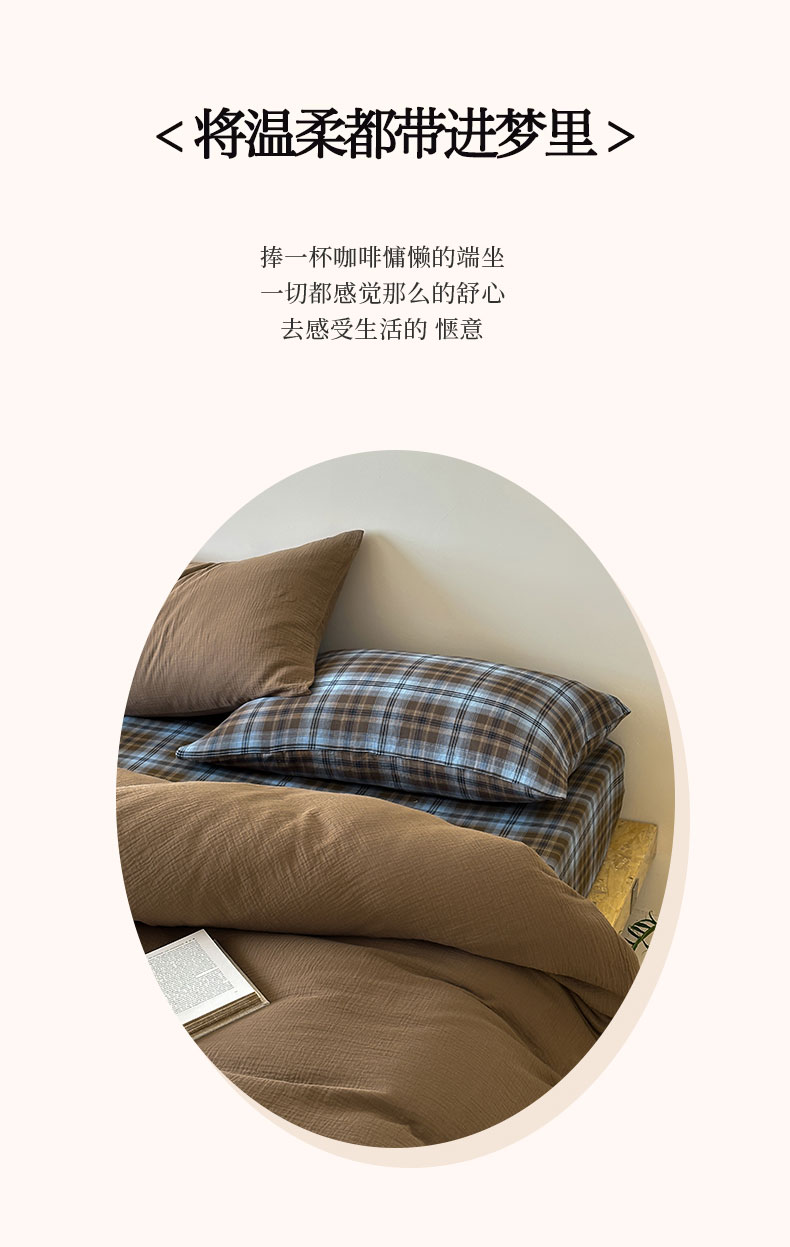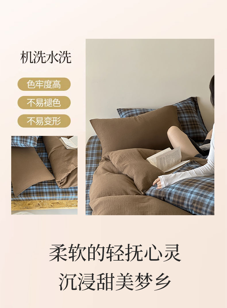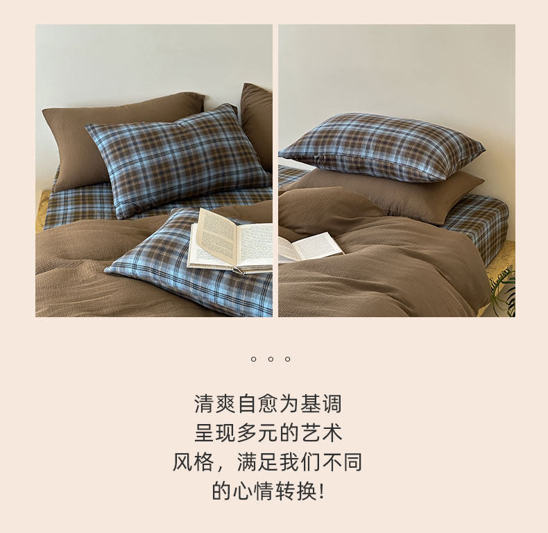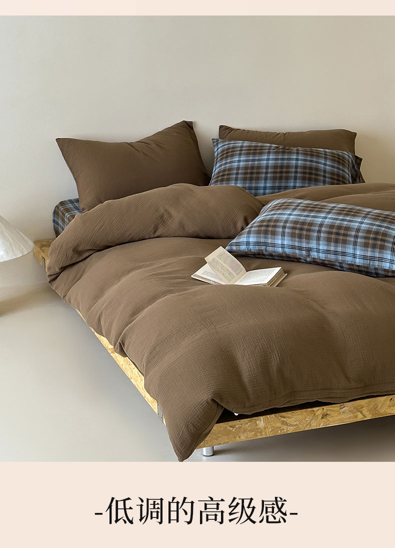 商品名称:山舍家居 2026新款全棉色织双层皱皱纱色织格子皱纱纯色混搭系列四件套 愈野
