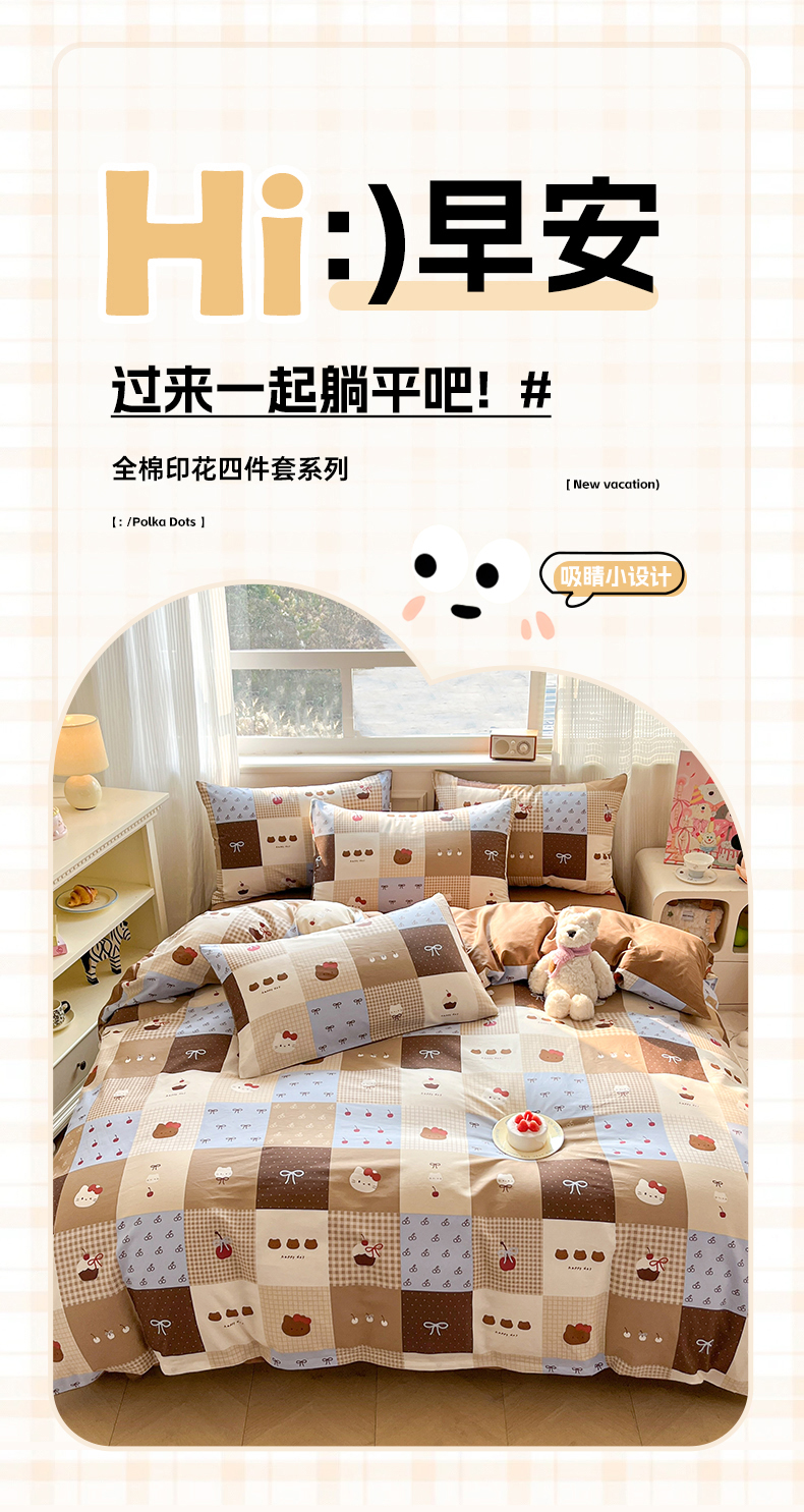 当前位置: 91家纺网 > 商品网购 > 床品套件 > 四件套 > 全棉普通四件套 > 博雅 2026新款全棉纯棉卡通四件套 咖格蛋糕猫