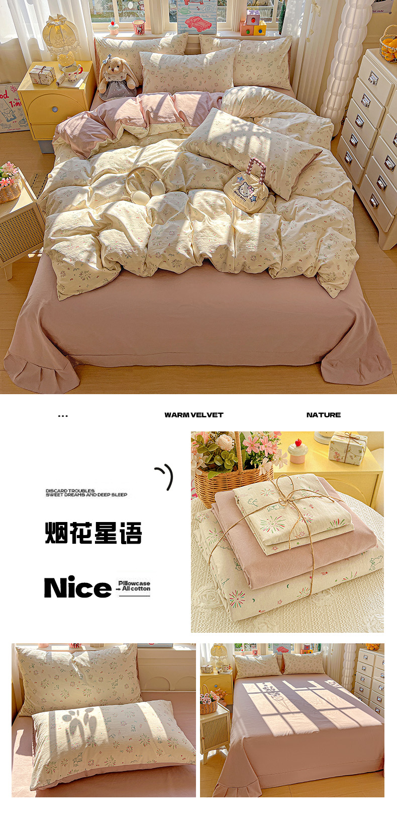 当前位置: 91家纺网 > 商品网购 > 床品套件 > 四件套 > 水洗棉四件套 > 弗苓家纺 2026新款古法水洗仿棉云感纱四件套小布袋 小幸运