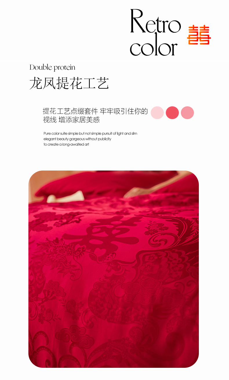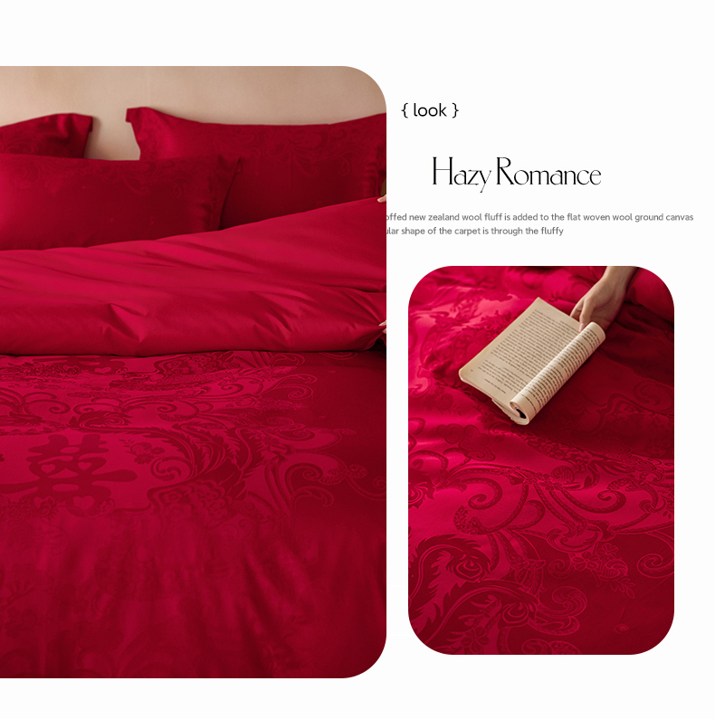 商品名称:宏羽纺家纺 2025新款小红书热卖款仿丝棉提花时尚婚庆系列四件套多件套 禧妆