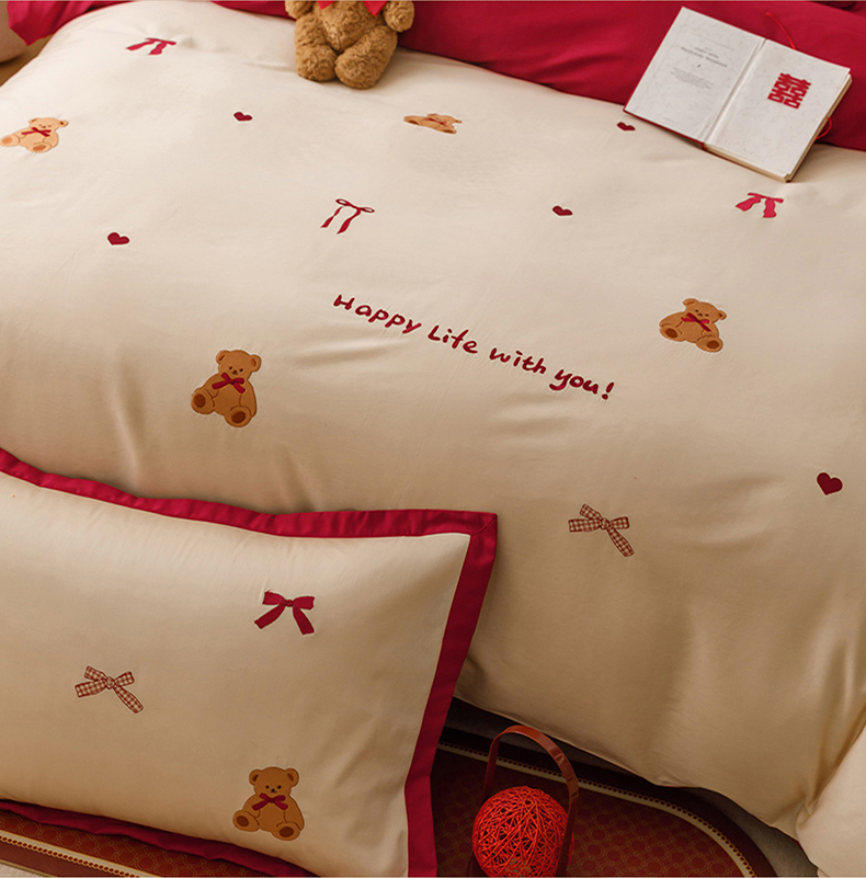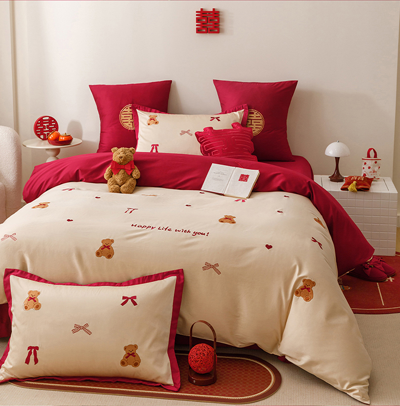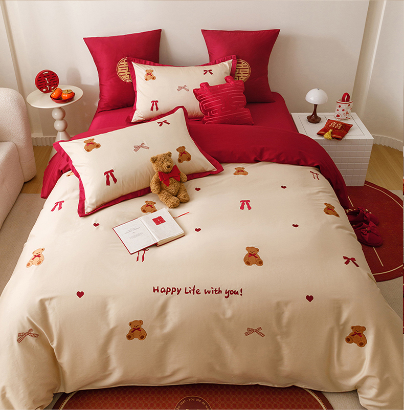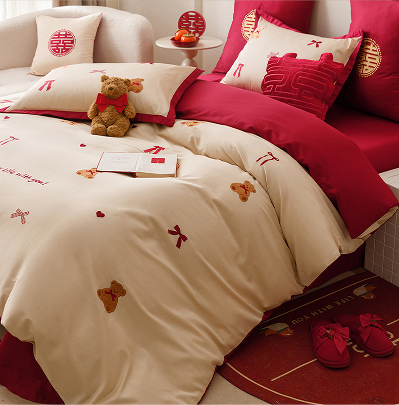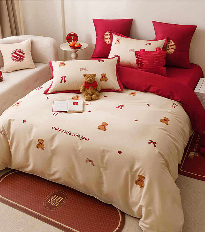 当前位置: 91家纺网 > 商品网购 > 床品套件 > 四件套 > 长绒棉四件套 > 甜咪咪婚庆 2026新品婚庆50s长绒棉全棉纯棉床单床盖款结婚四件套多件套 幸福约定