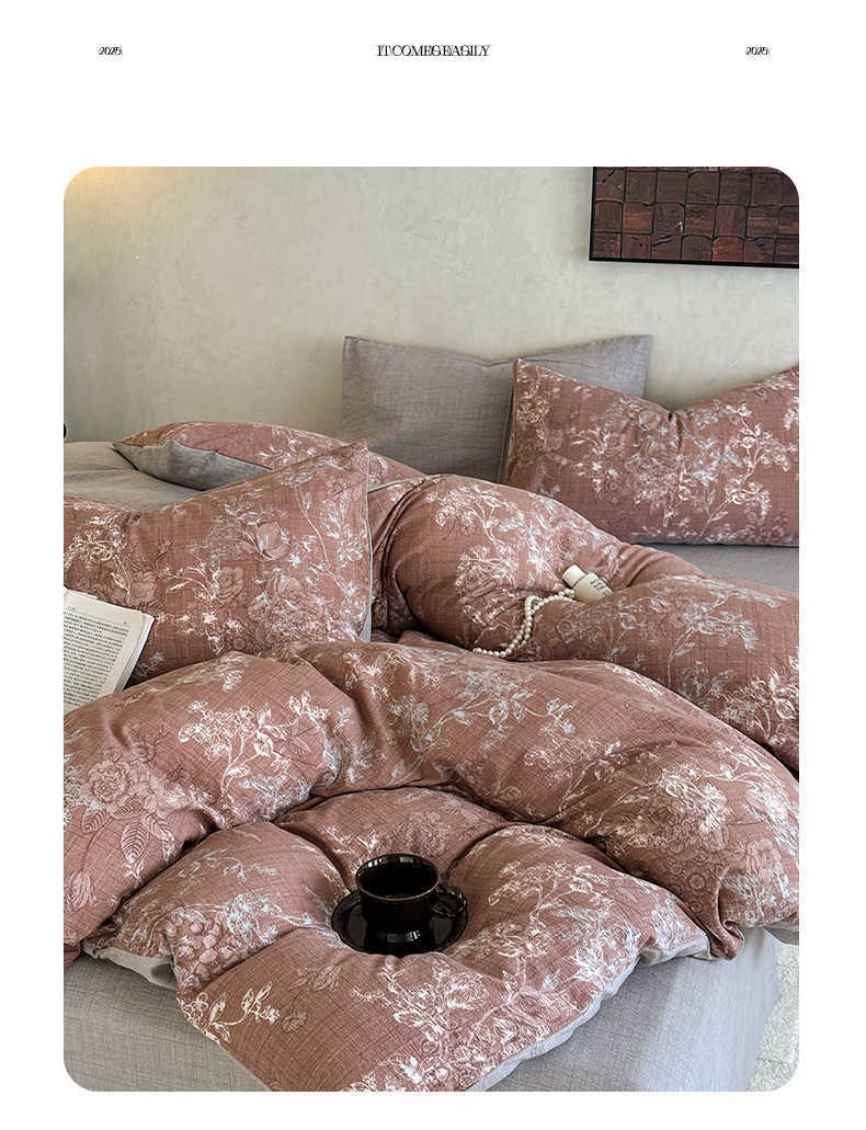 当前位置: 91家纺网 > 商品网购 > 床品套件 > 四件套 > 水洗棉四件套 > 桔禾家纺 2026新款提花高克重原麻复古水洗亚麻皱皱纱印花四件套 韵雅