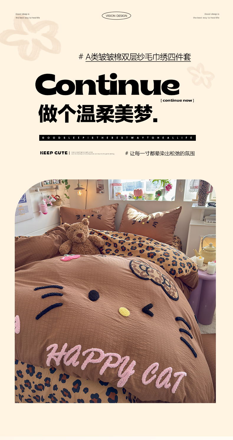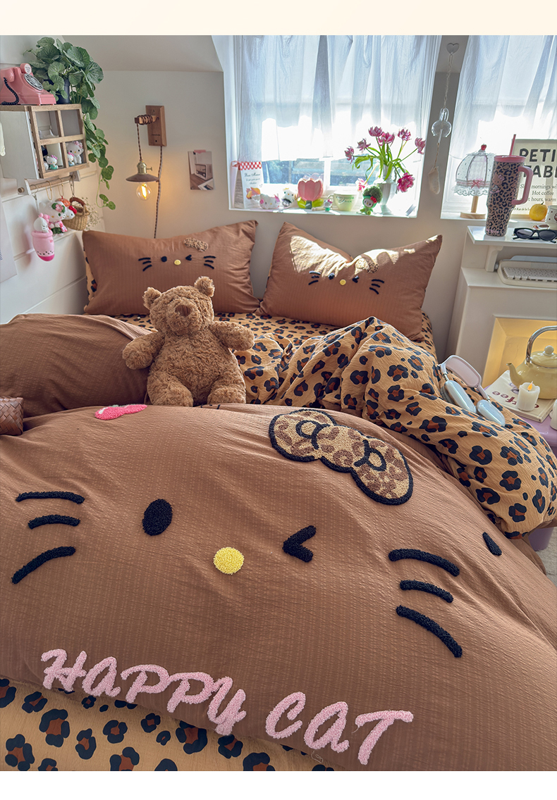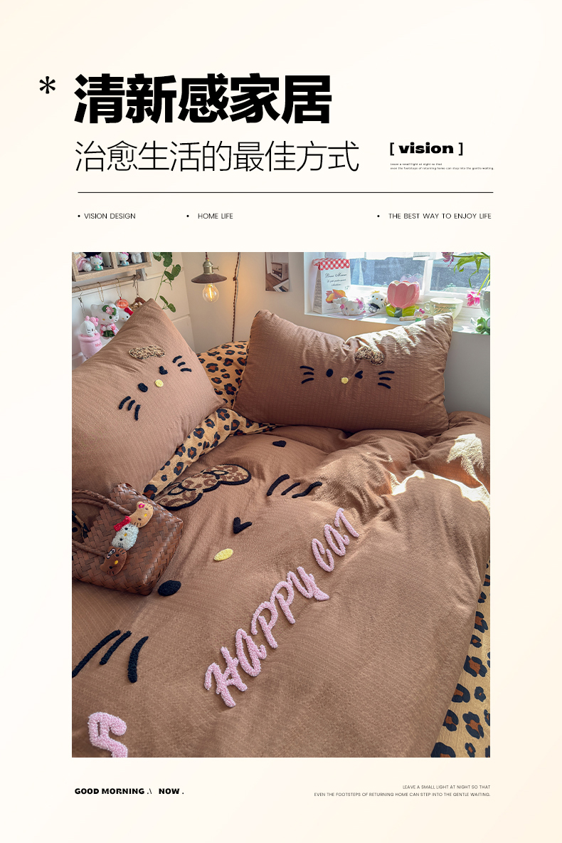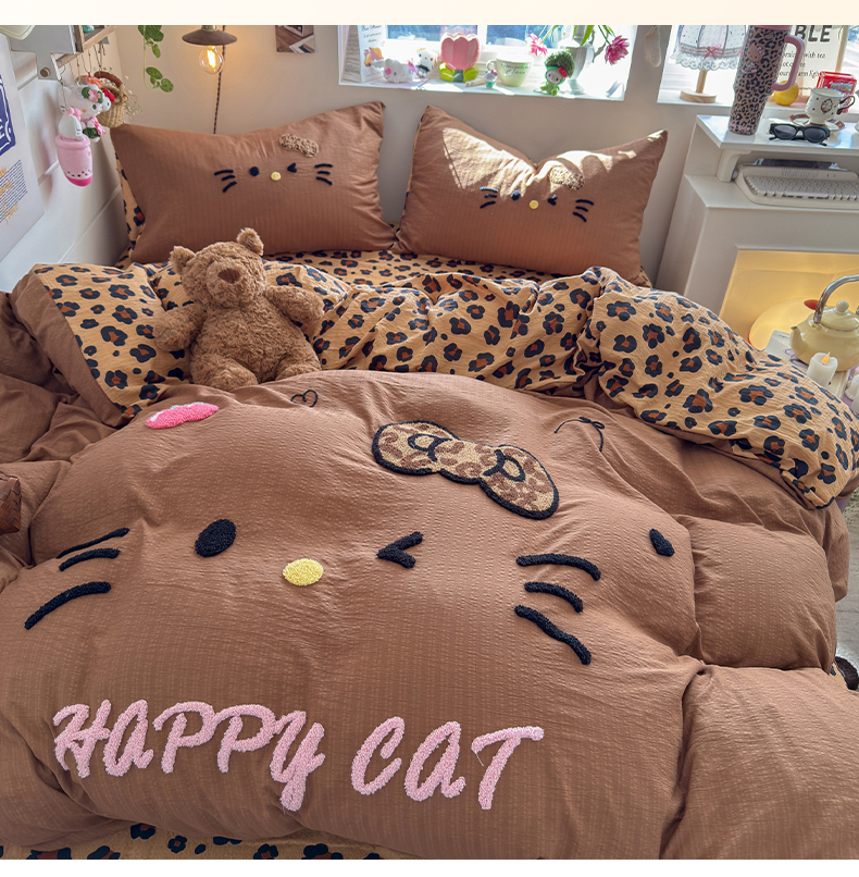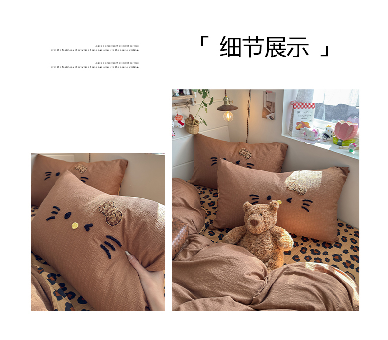 当前位置: 91家纺网 > 商品网购 > 床品套件 > 四件套 > 其它四件套 > 卡斯诺家纺馆 2026新款皱皱棉双层纱毛巾绣四件套(下载文件包含买家秀) 摩登猫咪-咖色