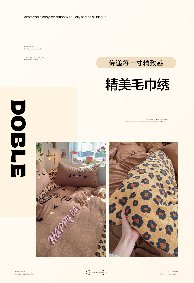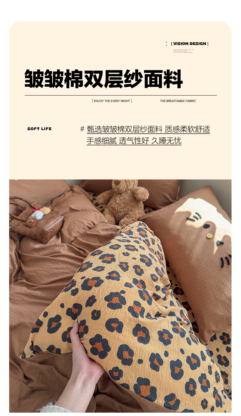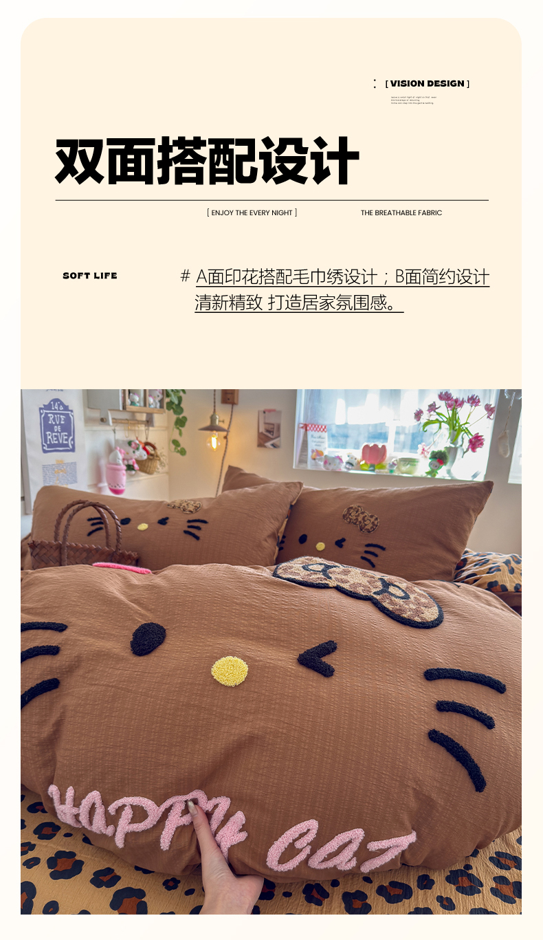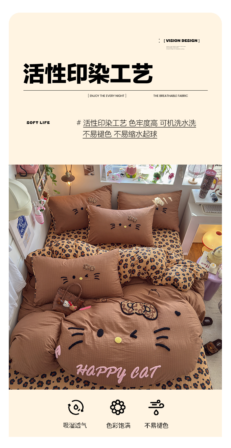当前位置: 91家纺网 > 商品网购 > 床品套件 > 四件套 > 其它四件套 > 卡斯诺家纺馆 2026新款皱皱棉双层纱毛巾绣四件套(下载文件包含买家秀) 摩登猫咪-咖色