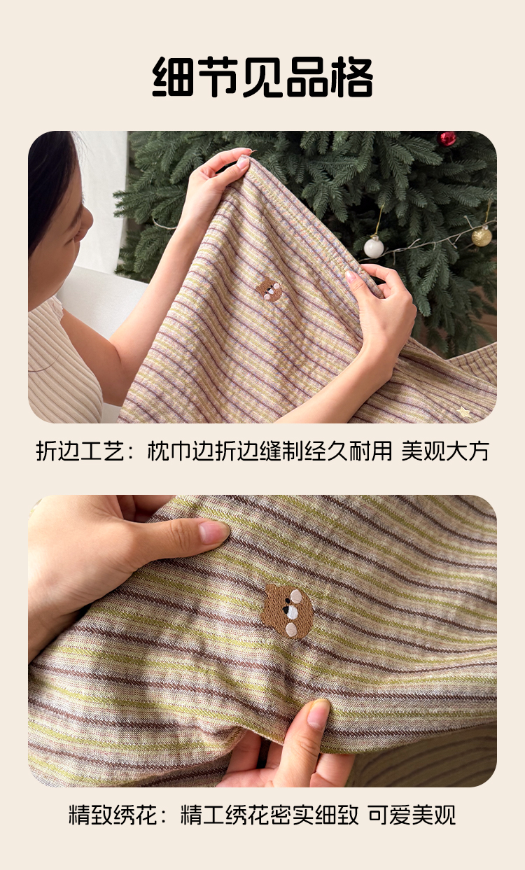 (总)沐瑟家纺 2026新款A类全棉三层色织提花纱布日系纱布枕巾-彩条,彩条 -红蓝,彩条-红绿