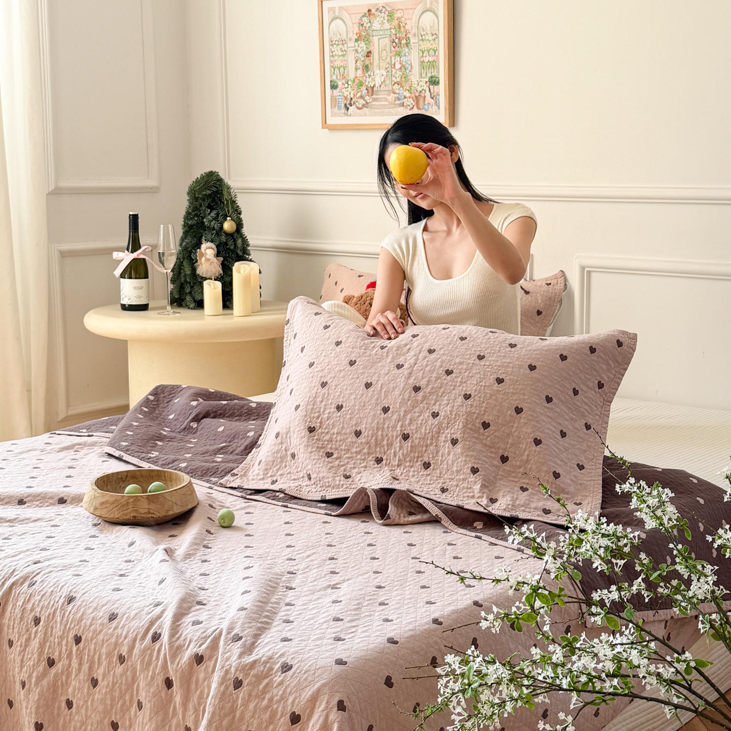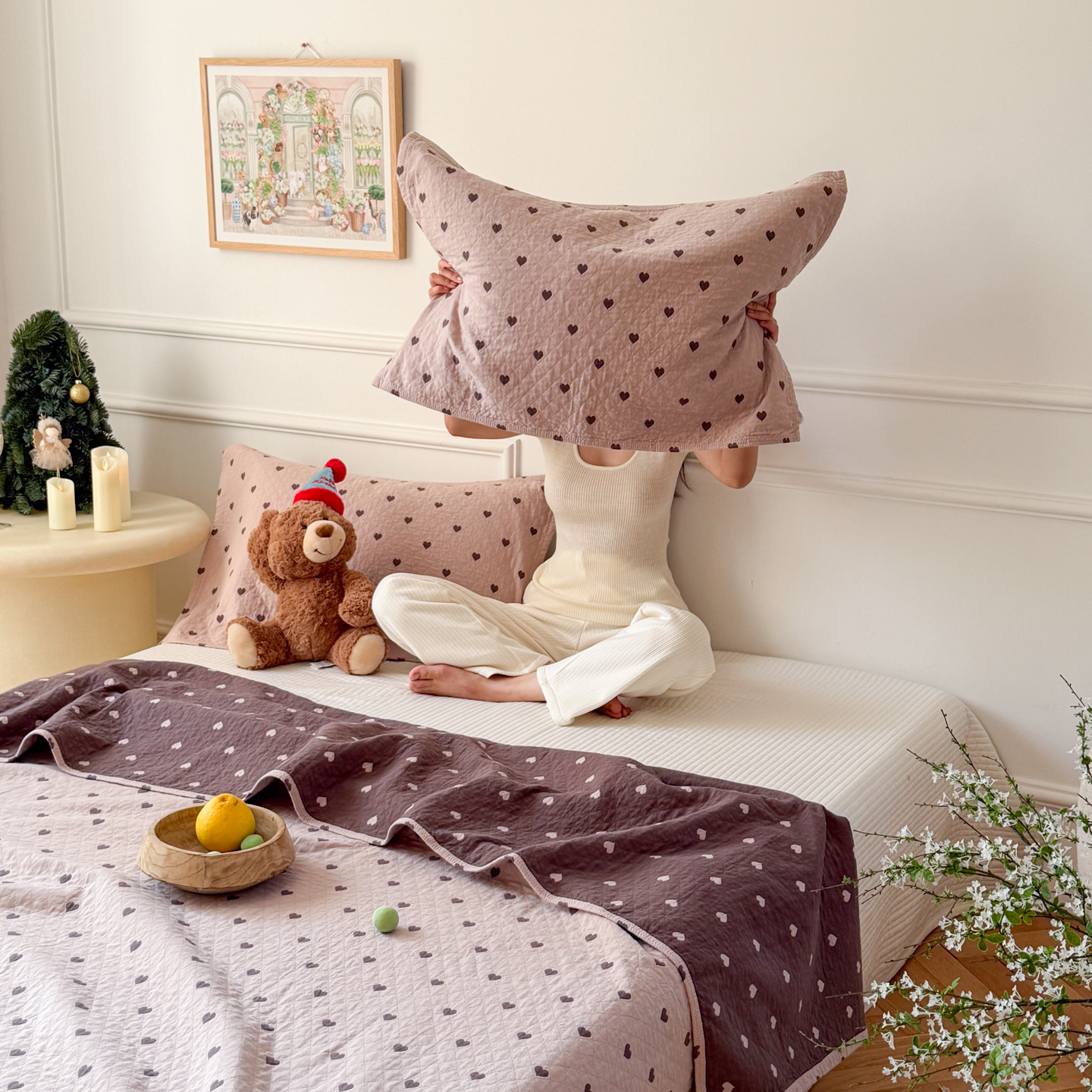 (总)沐瑟家纺 2025新款全棉纱布细纱布大床盖毯子床盖三件套LV系列,LV咖色,春意浓,玫瑰之约,小天鹅-绿,绽放-红色,绽放-姜黄