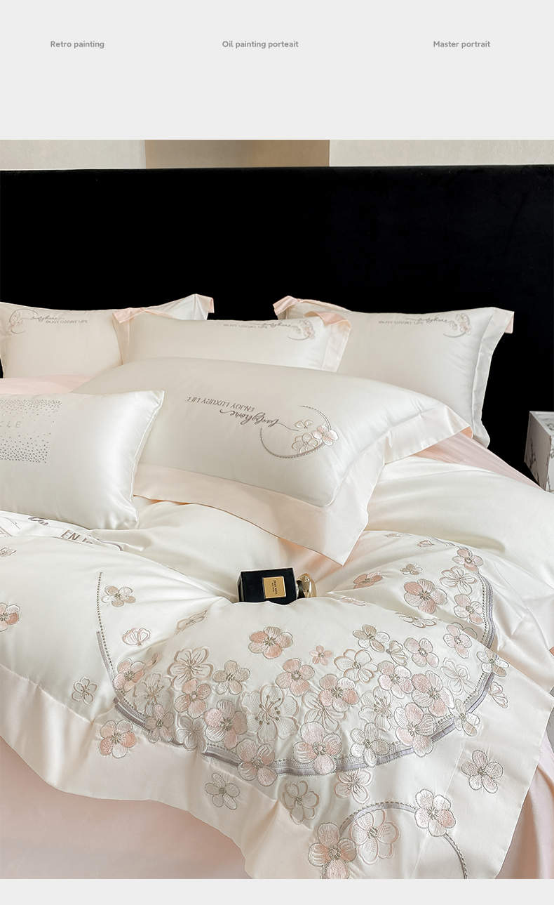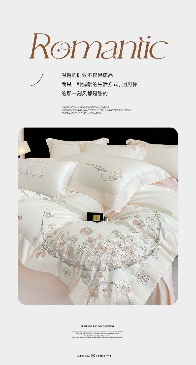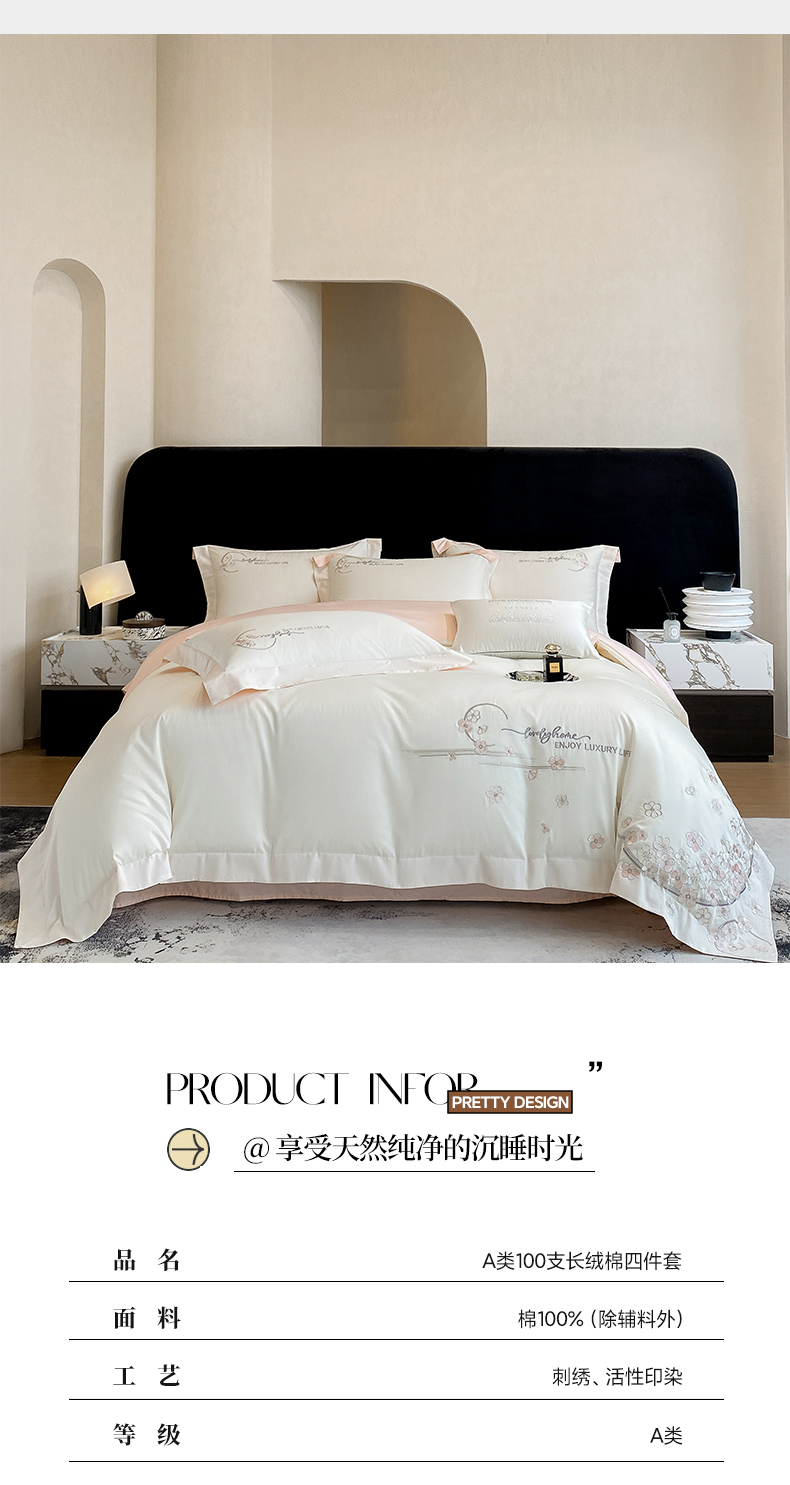商品名称:(总)欣宜家纺 2026春夏新款60支A类新疆长绒棉刺绣轻奢风四件套