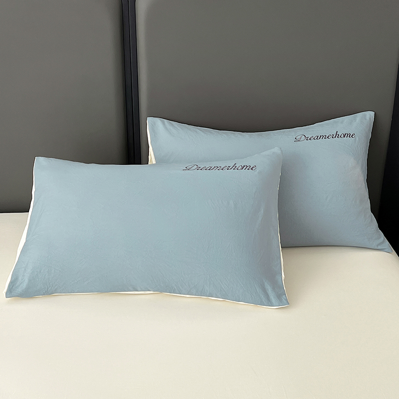 商品名称:鑫利来家纺 2026新款古法仿棉水洗云朵棉刺绣单枕套纯色双拼水洗磨毛简约字母刺绣枕套 慕斯-繁星蓝+天青