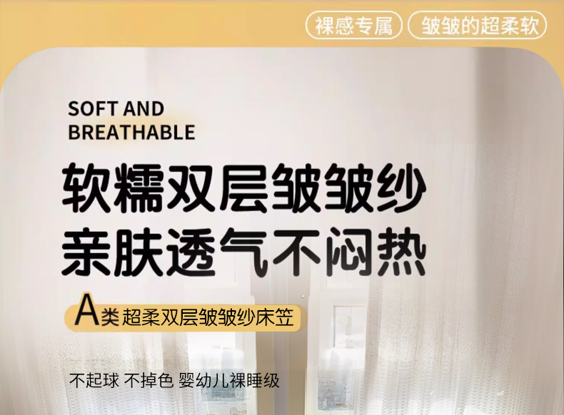 • 91家纺网 家纺一手货源 找家纺 丽美人家纺 2026新款A类柔软双层皱皱纱印花单床笠床笠单件 柔格小狗