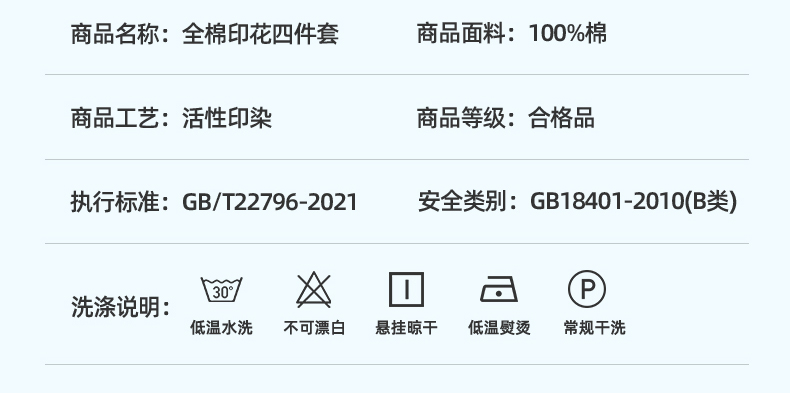 1.8m床笠四件套被套200x230 | ¥125.00 |