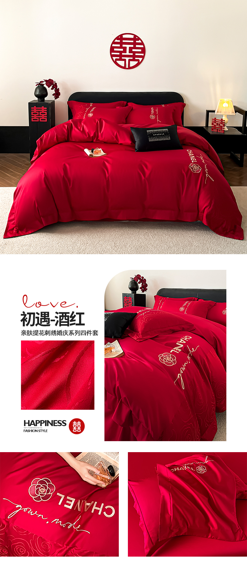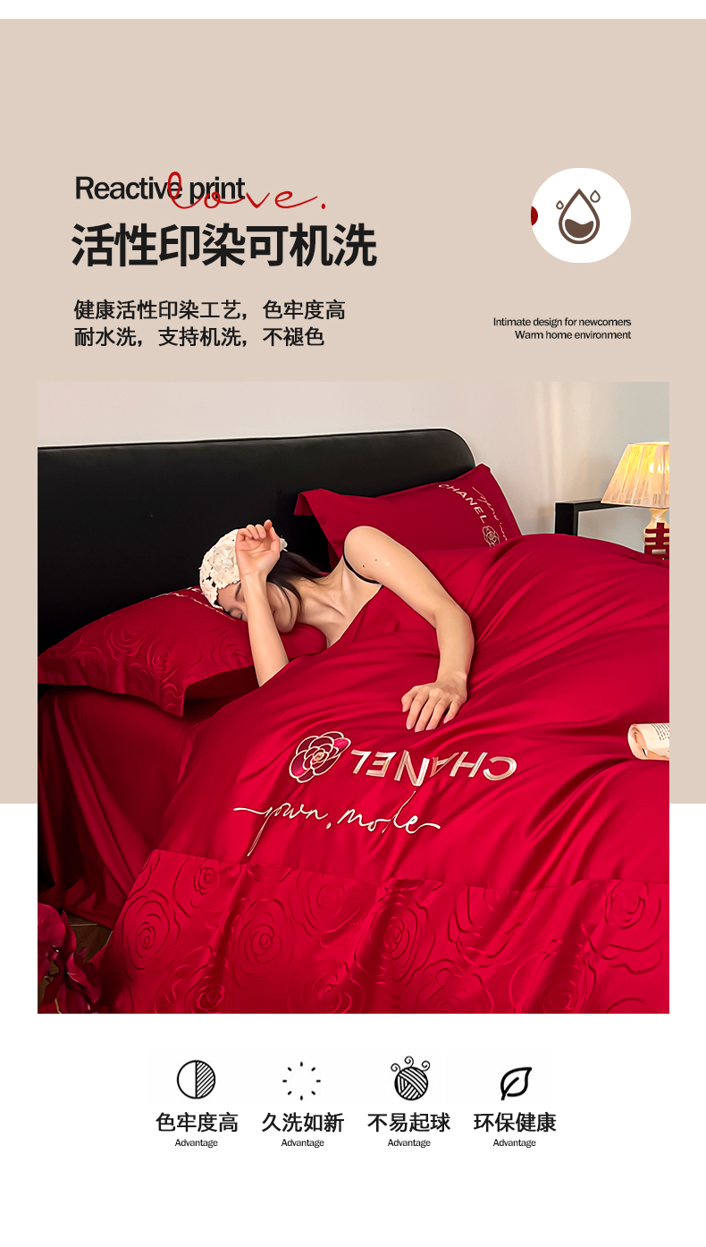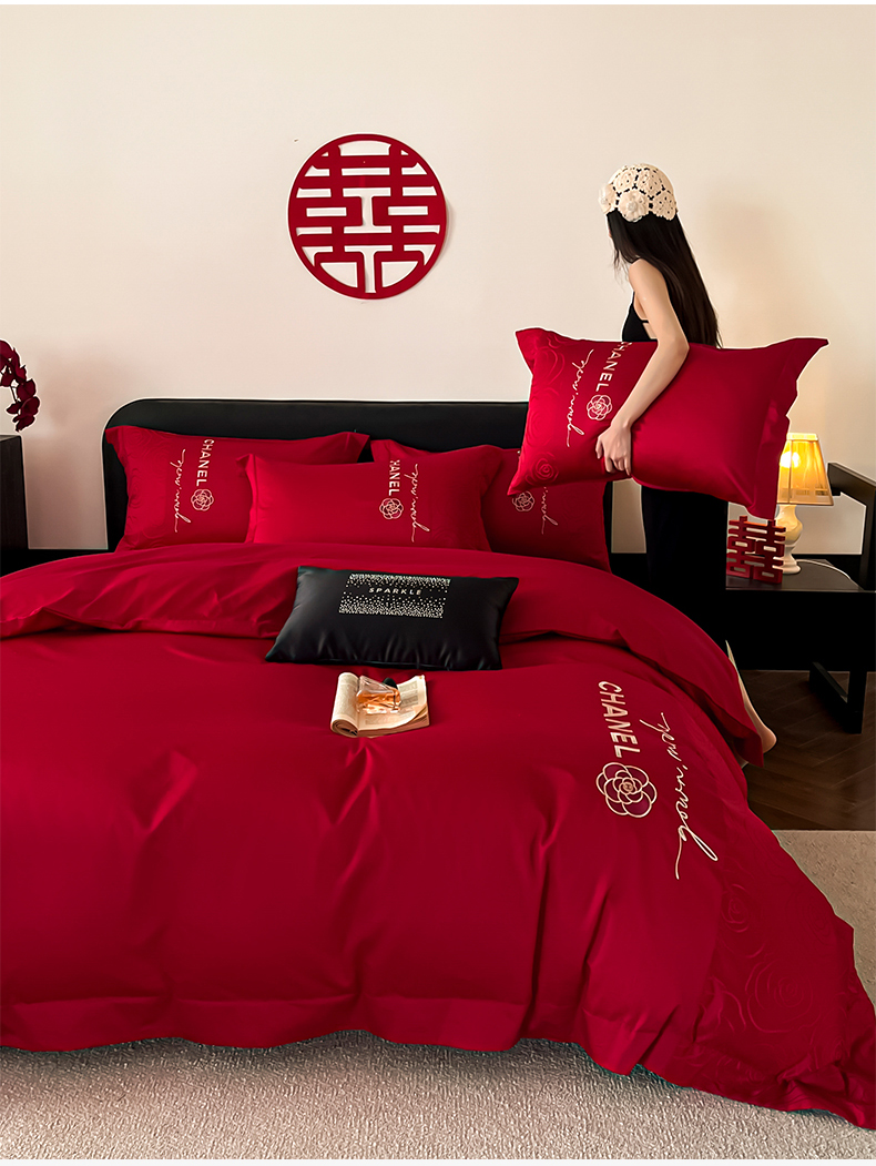 商品名称:(总)置顶家纺 2026新款喜至亲肤提花刺绣婚庆系列四件套