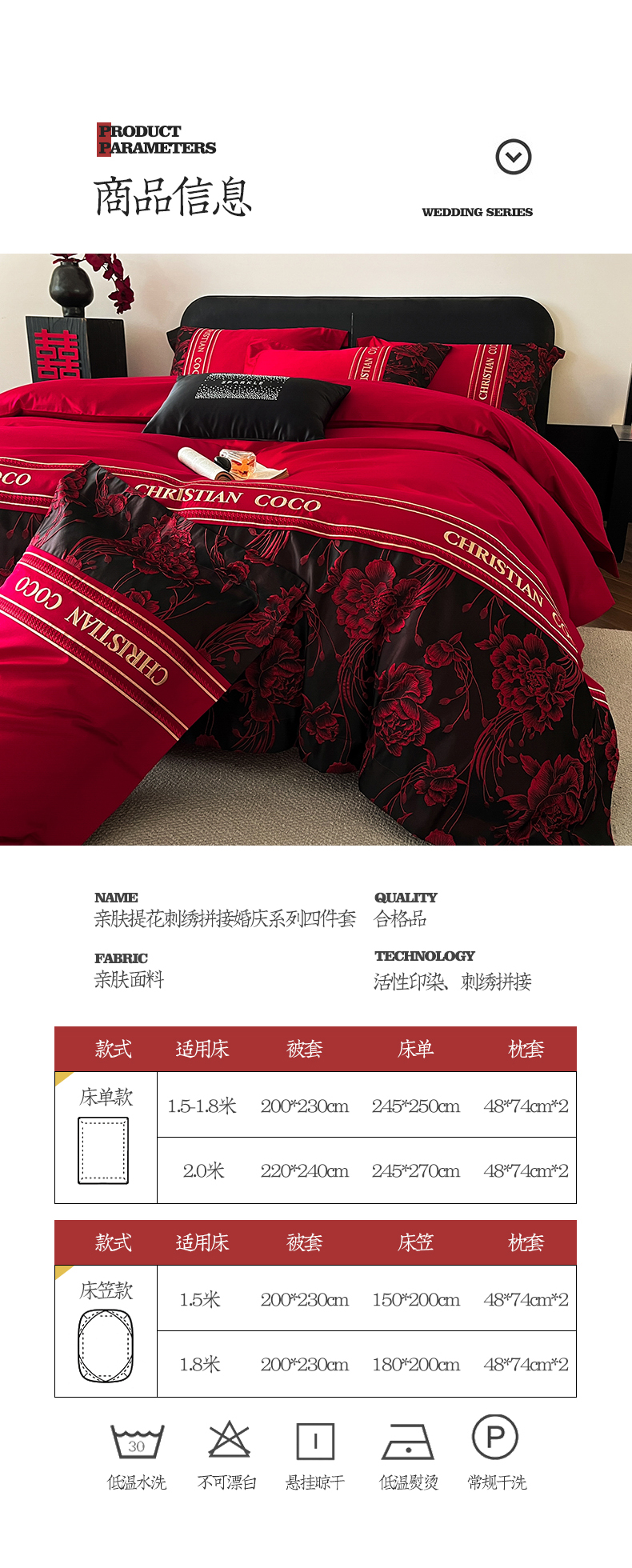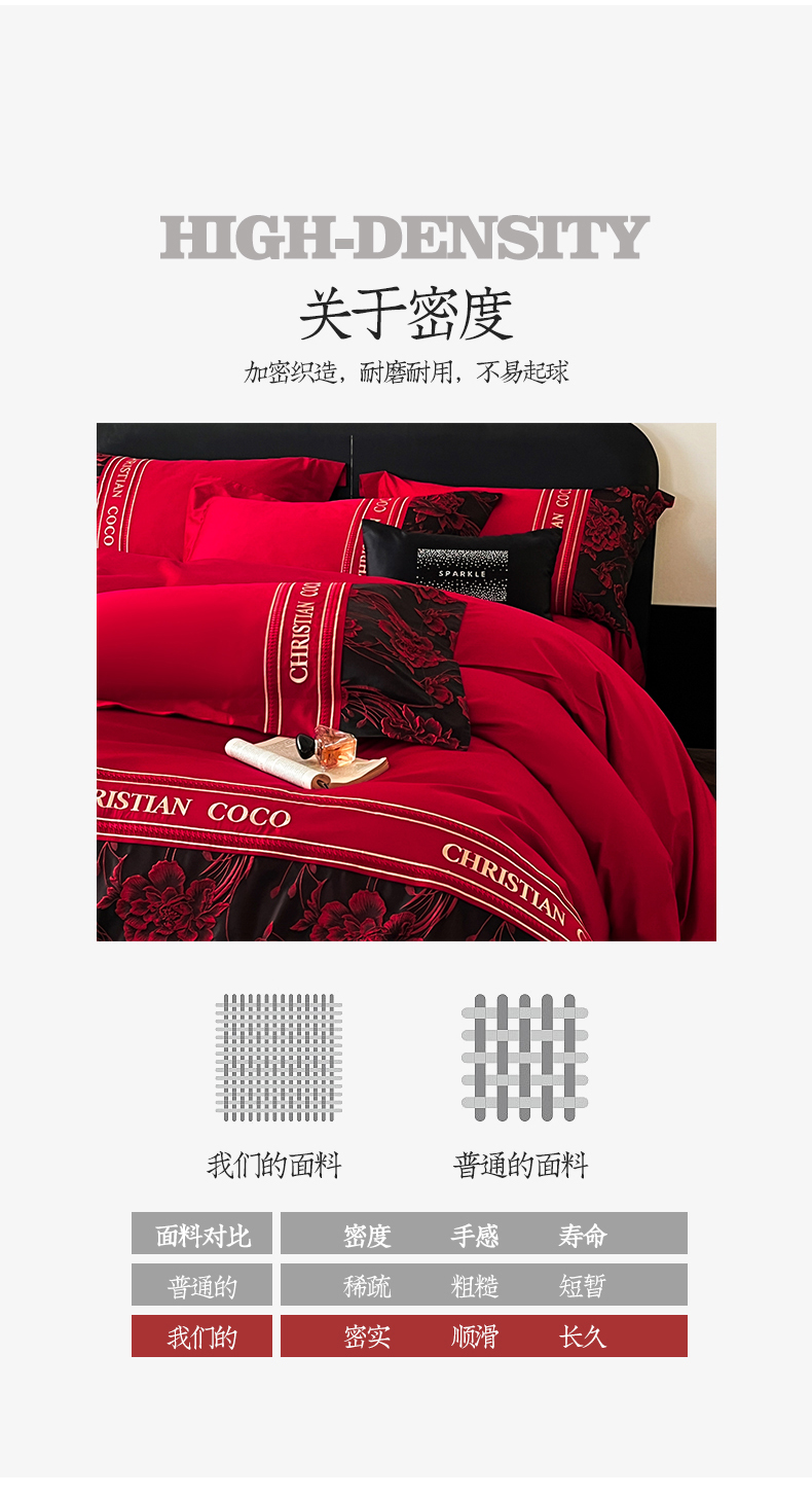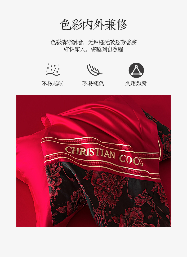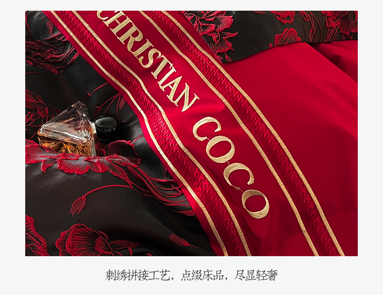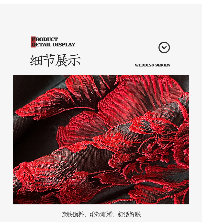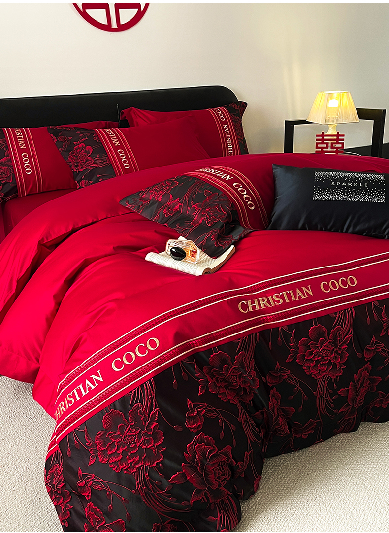 商品名称:置顶家纺 2026新款爱意亲肤提花刺绣婚庆系列四件套 爱意-大红