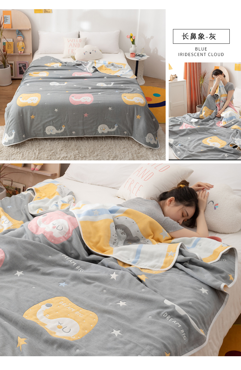 商品名称:朴尔家纺-毛巾被 2026新款卡漫风格全棉六层纱毛巾被 浩瀚宇宙-灰
