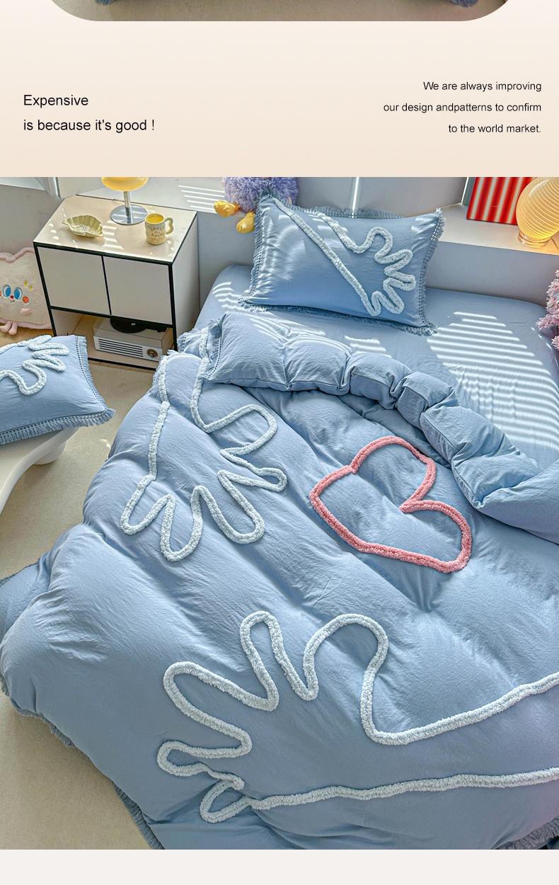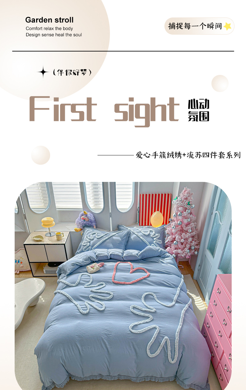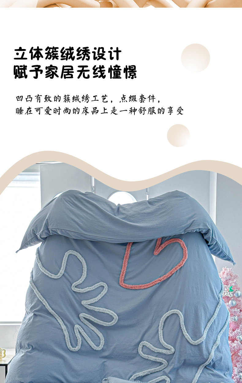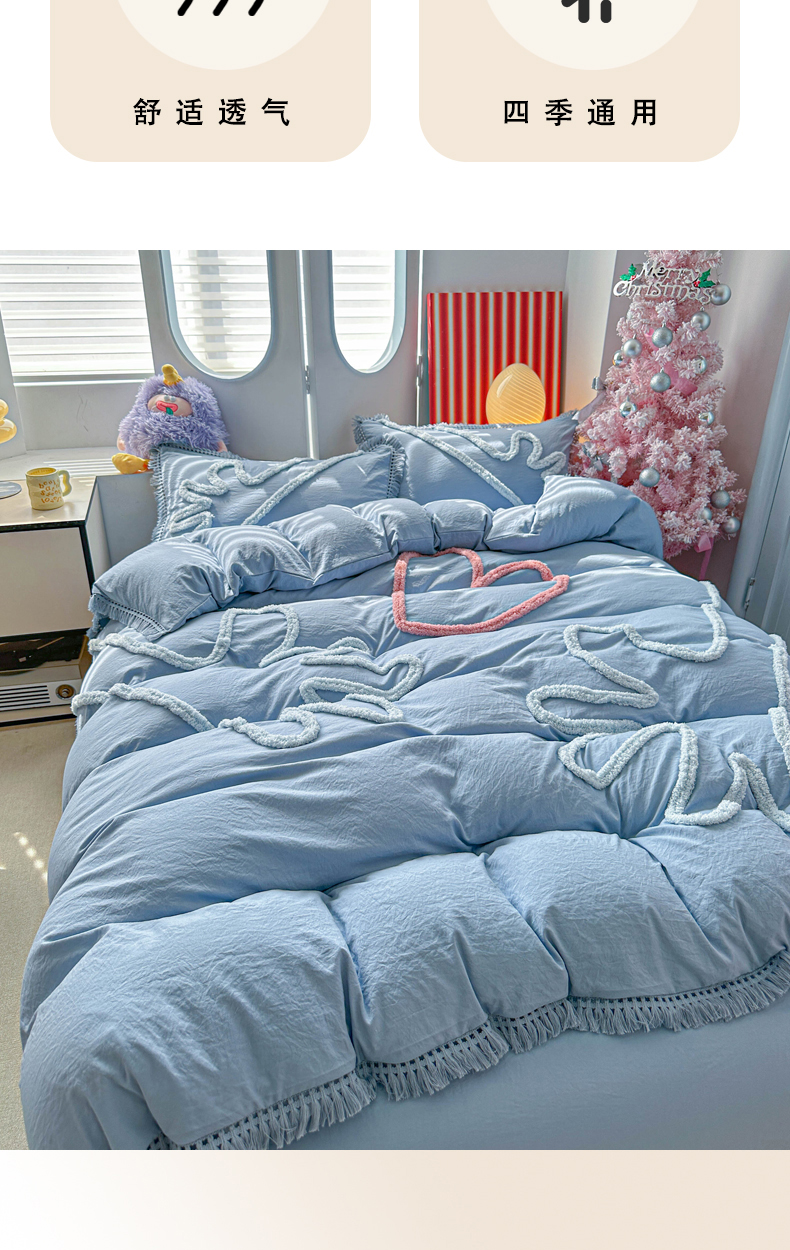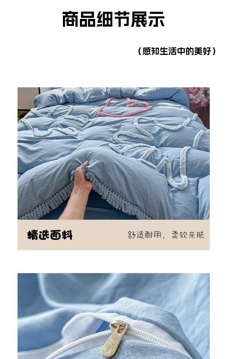 当前位置: 91家纺网 > 商品网购 > 床品套件 > 四件套 > 其它四件套 > 缘生活 2026新款立体簇绒绣流苏四件套 大爱爱心手-浅蓝