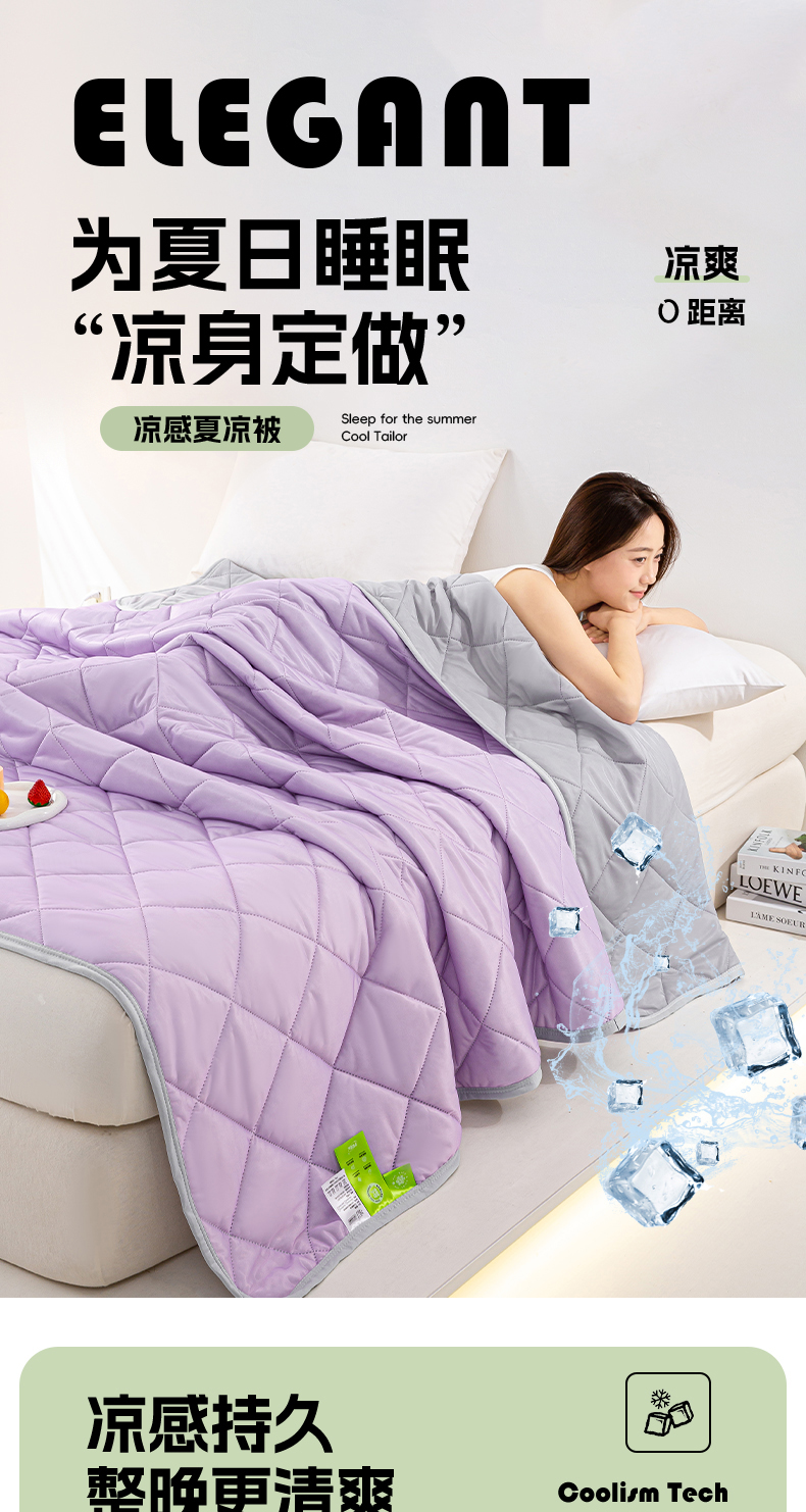 商品名称:憨豆家纺 2026新款凉感丝夏被冰淇淋纯色夏凉被空调被夏季薄被子直播外贸跨境爆款 活力紫