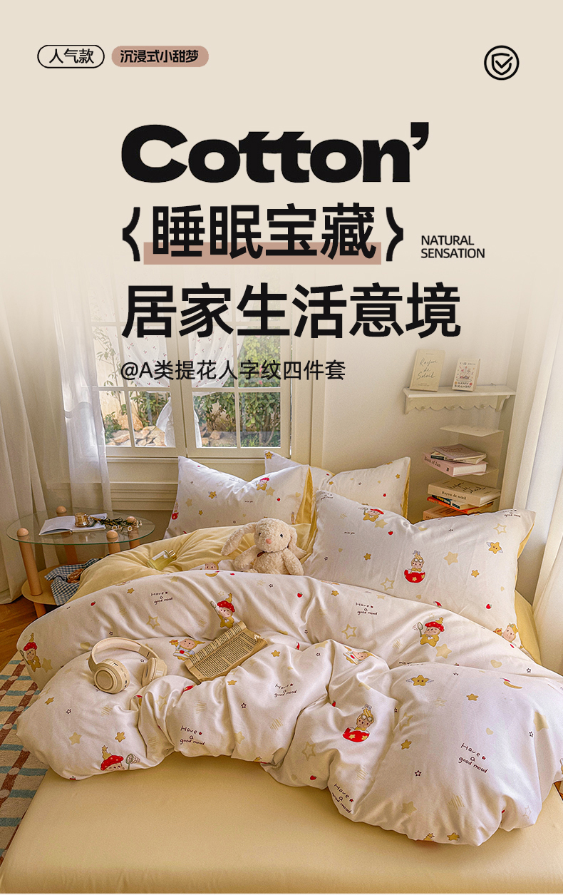 当前位置: 91家纺网 > 商品网购 > 床品套件 > 四件套 > 其它四件套 > 水木坊 2026新款130克高克重人字纹提花四件套 星星人
