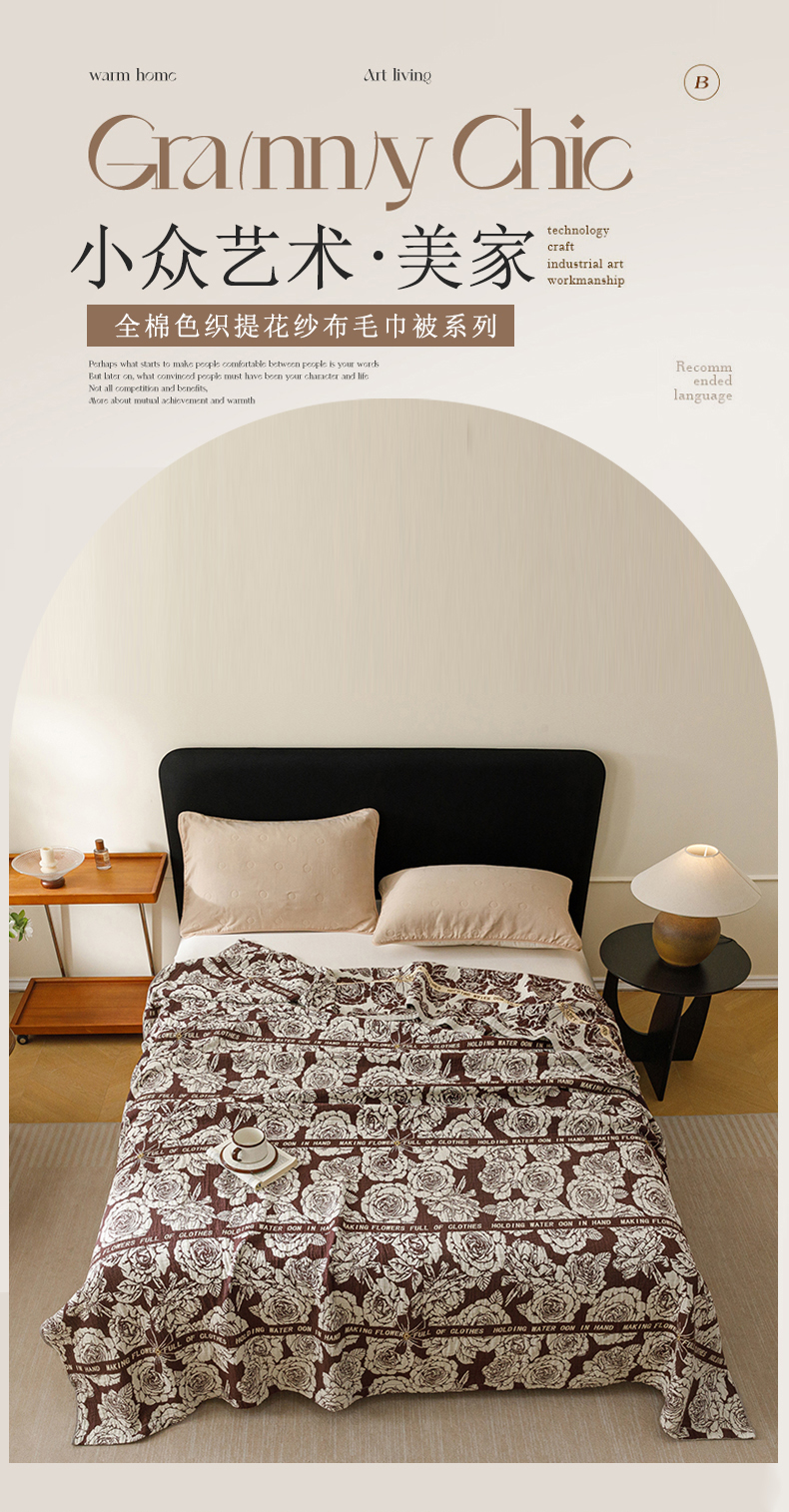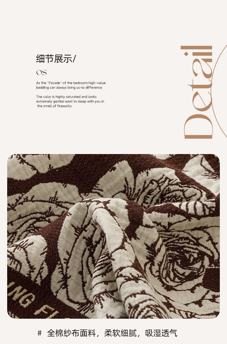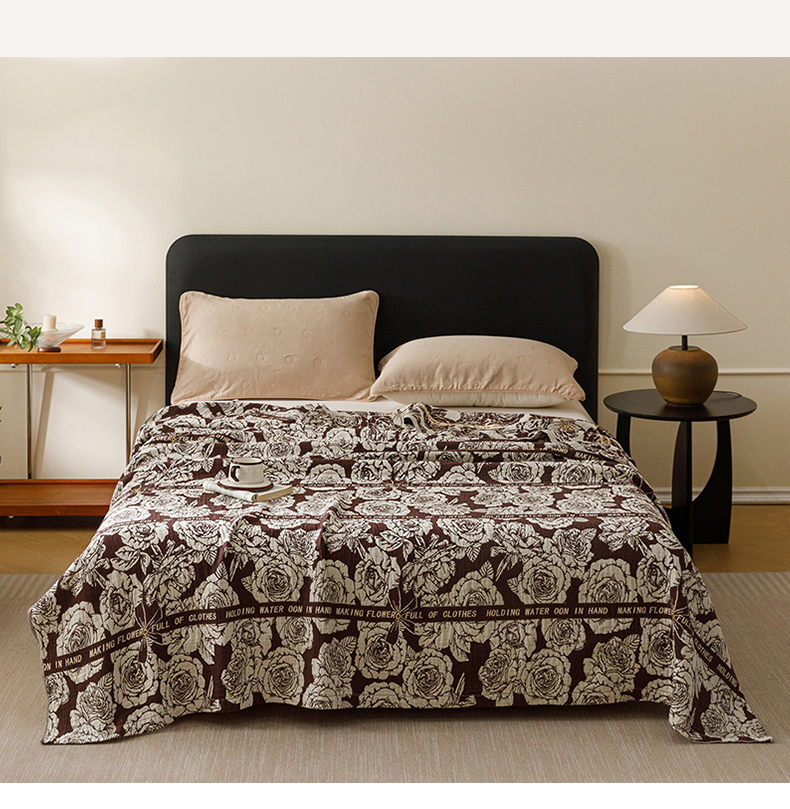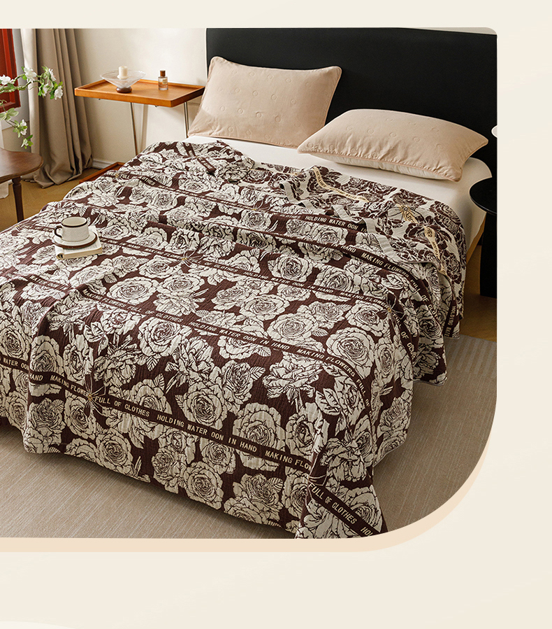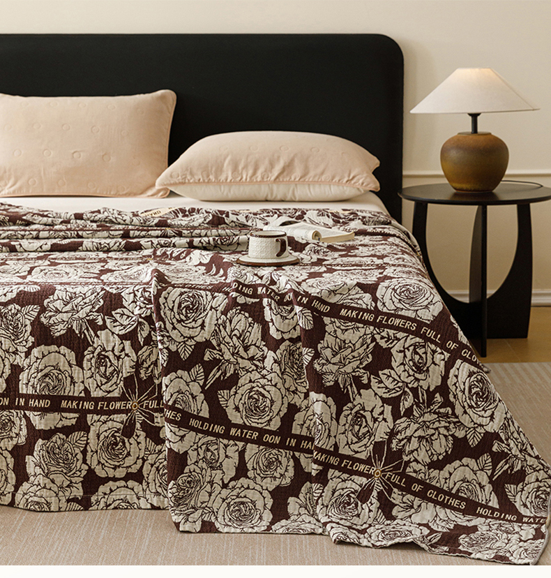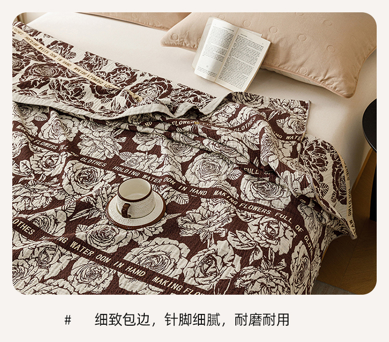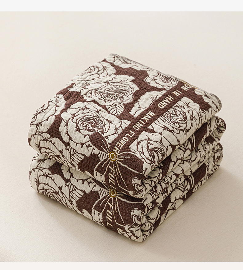 商品名称:悦然毛巾被 2026新款美拉德色织提花全棉纯棉纱布毛巾被夏被夏凉被空调被 夜宴玫瑰棕