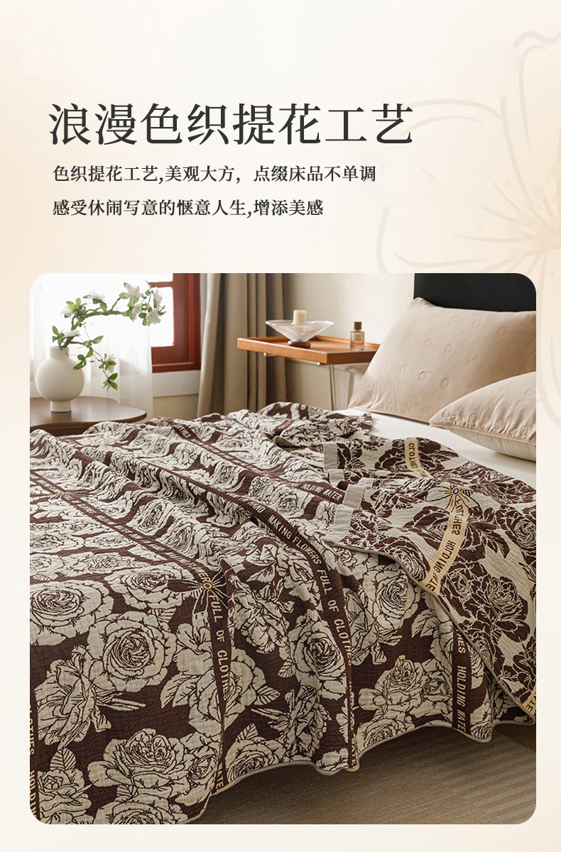 (总)悦然毛巾被 2026新款美拉德色织提花全棉纯棉纱布毛巾被夏被夏凉被空调被,花影蝶梦,花影蝶梦棕,简居,简居咖,夜宴玫瑰,夜宴玫瑰棕,组合图仅供展示不可下单