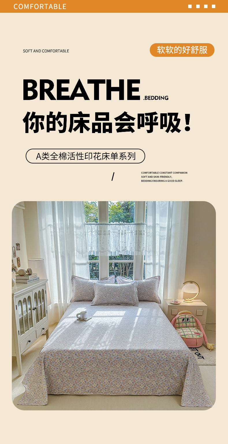 帛织澜家纺 2026新款A类新疆全棉纯棉12868单品印花床单系列(预留缩水,提供质检报告) 樱芝