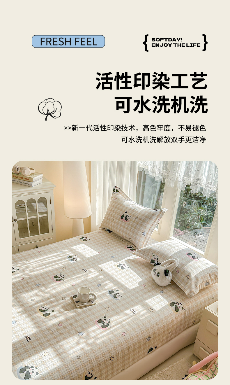 帛织澜家纺 2026新款A类新疆全棉纯棉12868单品印花床笠系列(预留缩水,提供质检报告) 星空熊猫