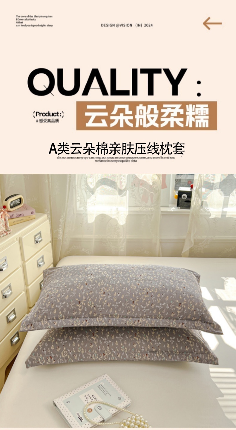• 91家纺网 家纺一手货源 找家纺 (总)圣比熊 2026新款A类云朵棉单层枕套1.8米情侣双人加长枕芯内胆套-单层压线,元气小新(单层压线),甜品小猫(单层压线),巴黎之恋(单层压线),豹纹猫猫(单层压线),藏海蓝(单层压线),海棠花开(单层压线),花无归期(单层压线),花漾甜心(单层压线),花屿轻梦(单层压线),欢喜汪汪(单层压线),灰樱桃(单层压线),兰亭序-灰(单层压线),兰亭序-蓝(单层压线),秘密花园(单层压线),暖木黄(单层压线),芊芊花海(单层压线),浅清绿(单层压线),深海乐园(单层压线),童趣小象(单层压线),玩趣木马(单层压线),小猫钓鱼(单层压线),小木马(单层压线),心动粉(单层压线),幸运星(单层压线),阳光狮(单层压线),樱桃花语(单层压线),云墨灰(单层压线)