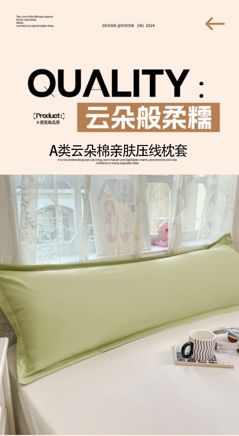 商品名称:圣比熊 2026新款A类云朵棉单层枕套1.8米情侣双人加长枕芯内胆套-单层压线 浅清绿(单层压线)