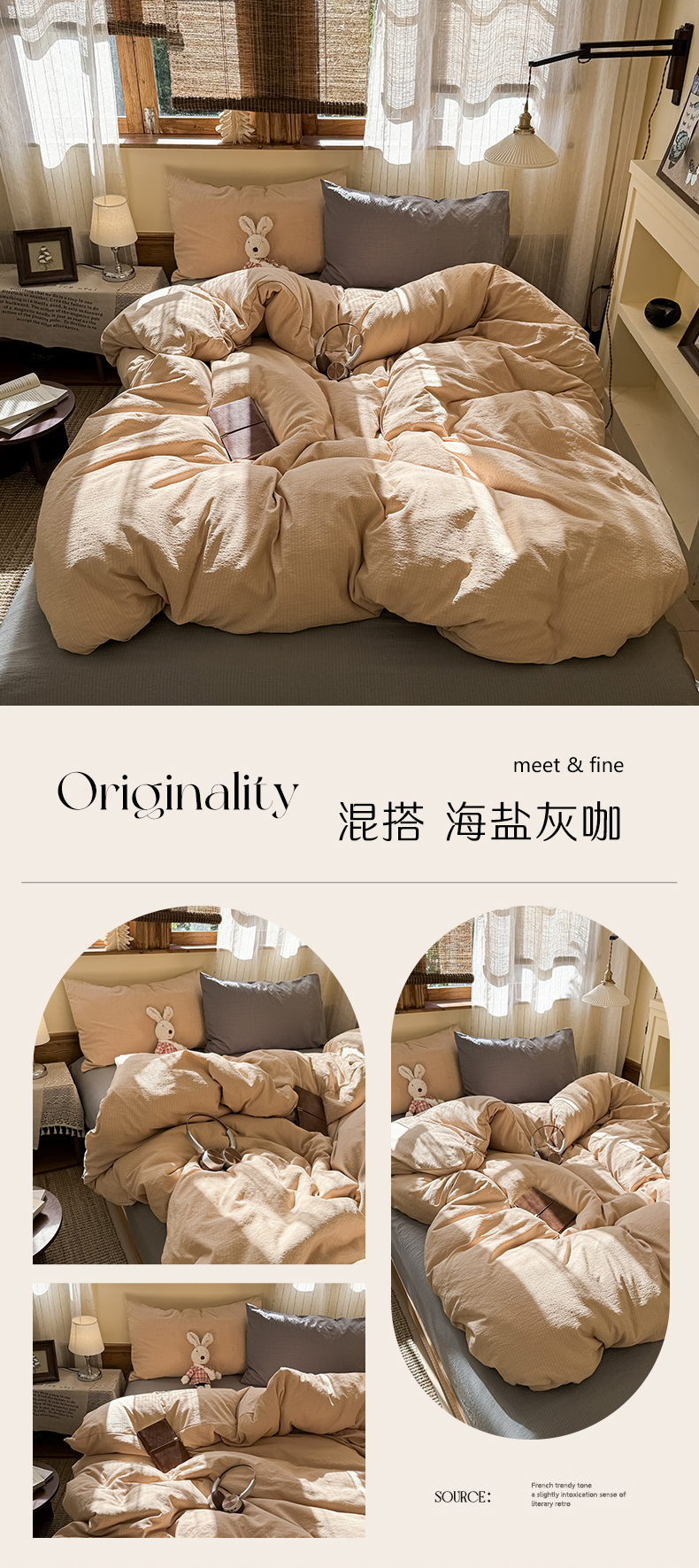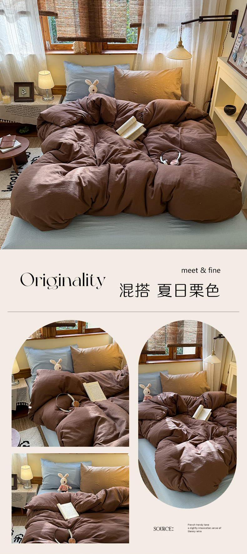 当前位置: 91家纺网 > 商品网购 > 床品套件 > 四件套 > 其它四件套 > 海岛哥哥 2026新款云感纱混搭纯色双拼四件套 混搭 紫萝奶咖