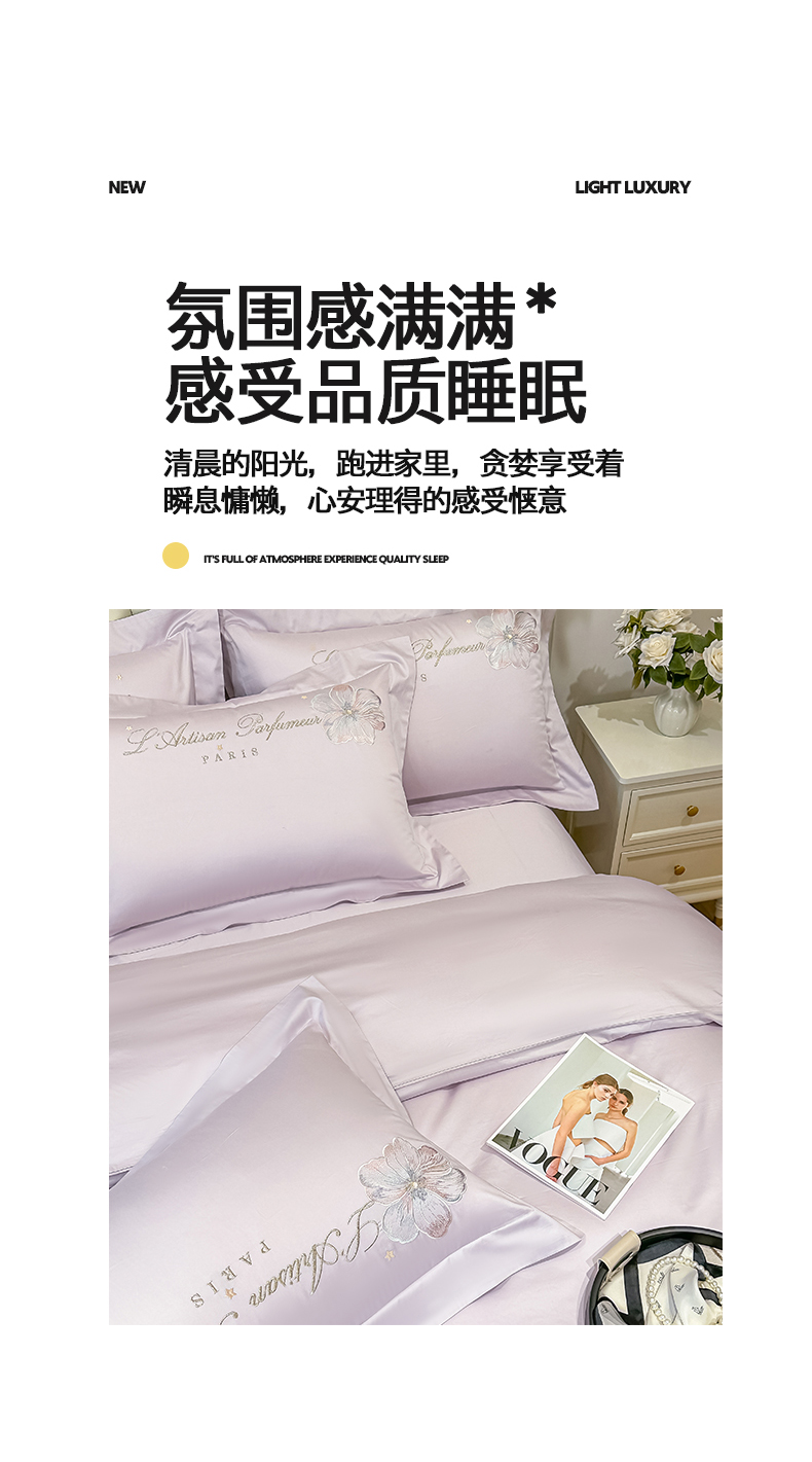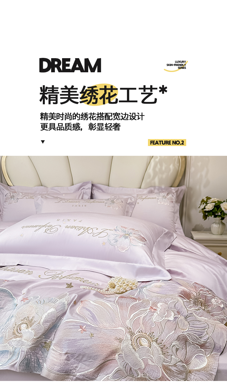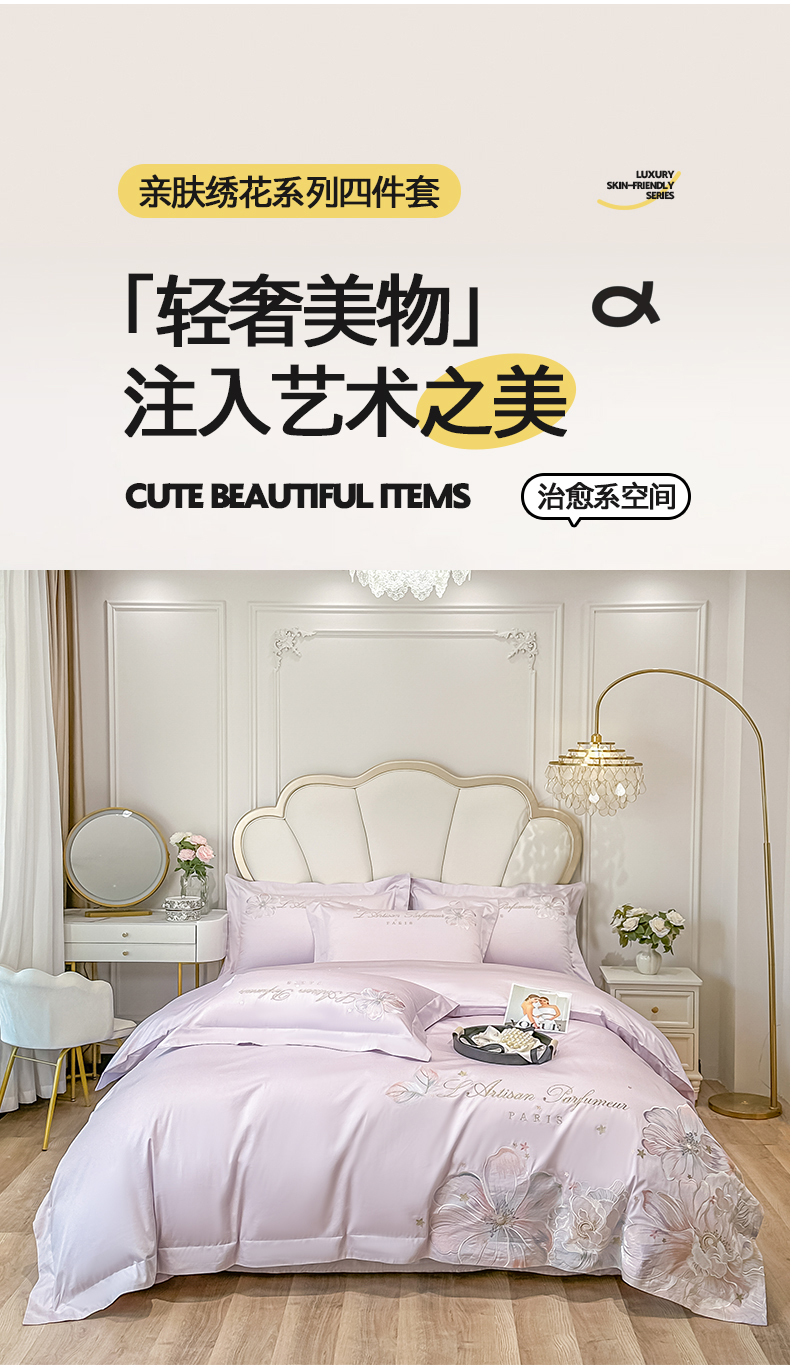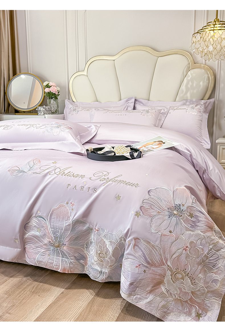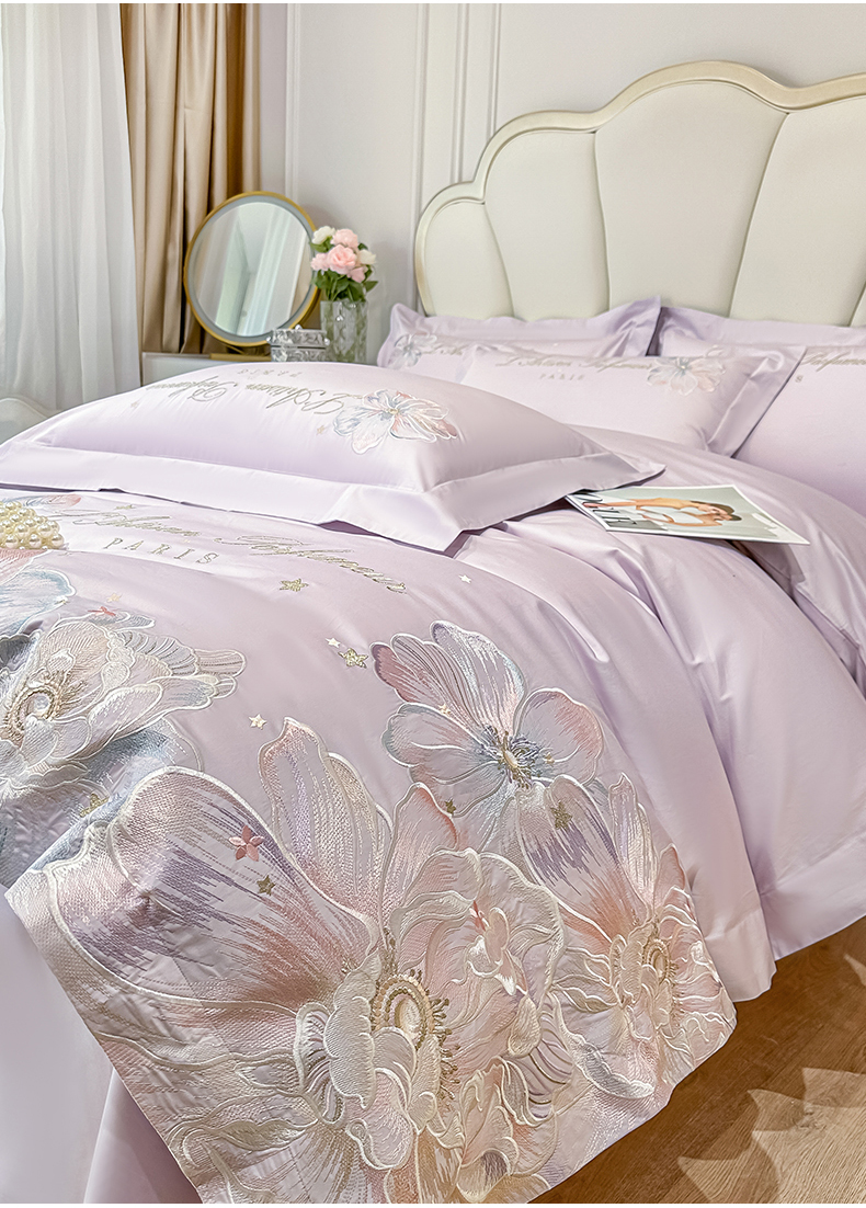 当前位置: 91家纺网 > 商品网购 > 床品套件 > 四件套 > 其它四件套 > 置顶家纺 2026新款花汐子亲肤刺绣小清新四件套 花汐子-香芋紫