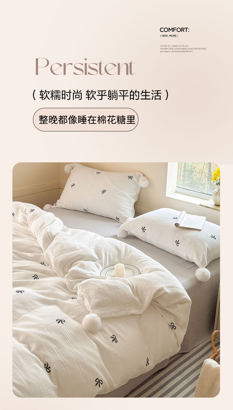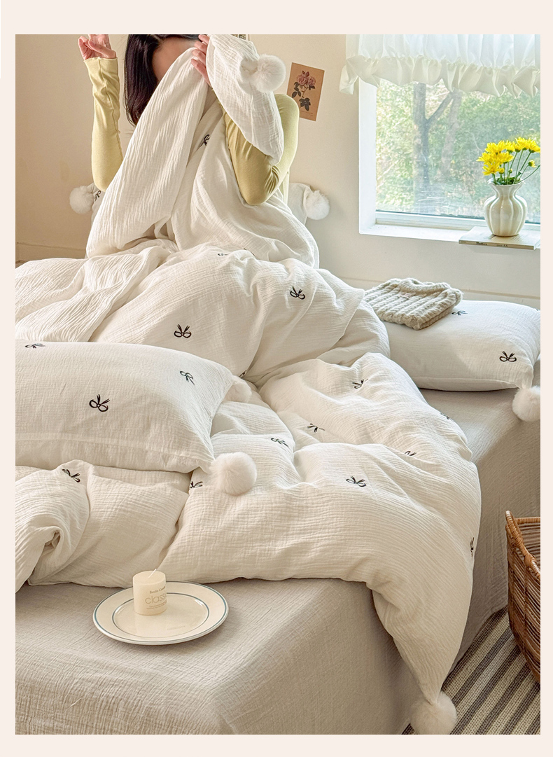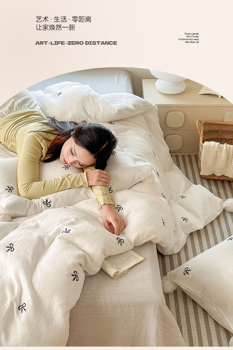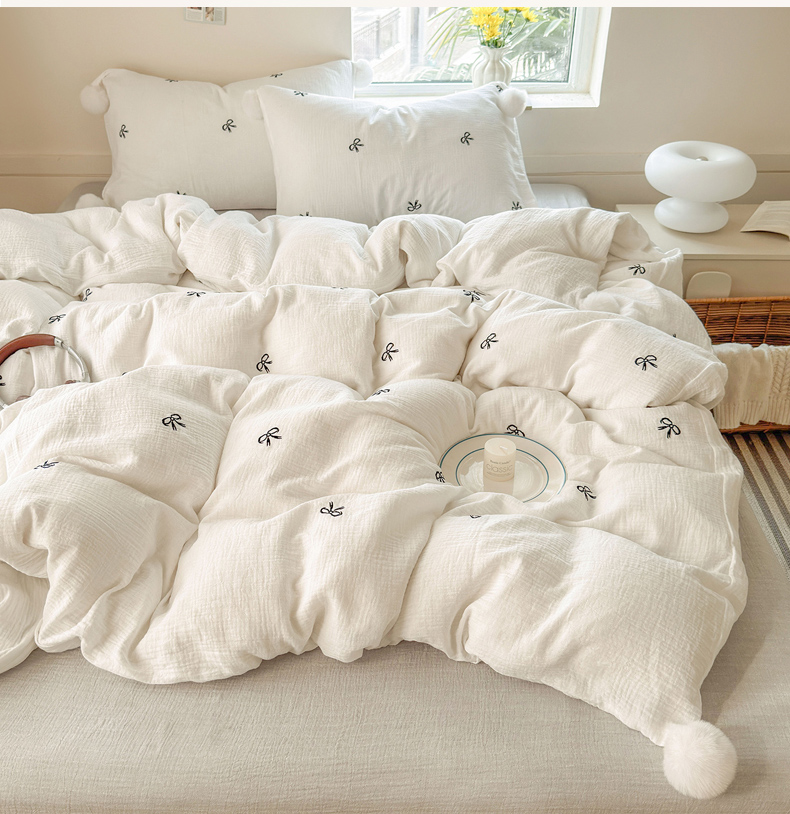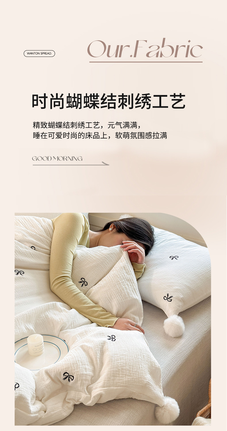 当前位置: 91家纺网 > 商品网购 > 床品套件 > 四件套 > 全棉普通四件套 > 木楌家居 2026年新款全棉纯棉皱皱纱四件套-云朵蝴蝶结系列 云朵蝴蝶结-雾夜黑