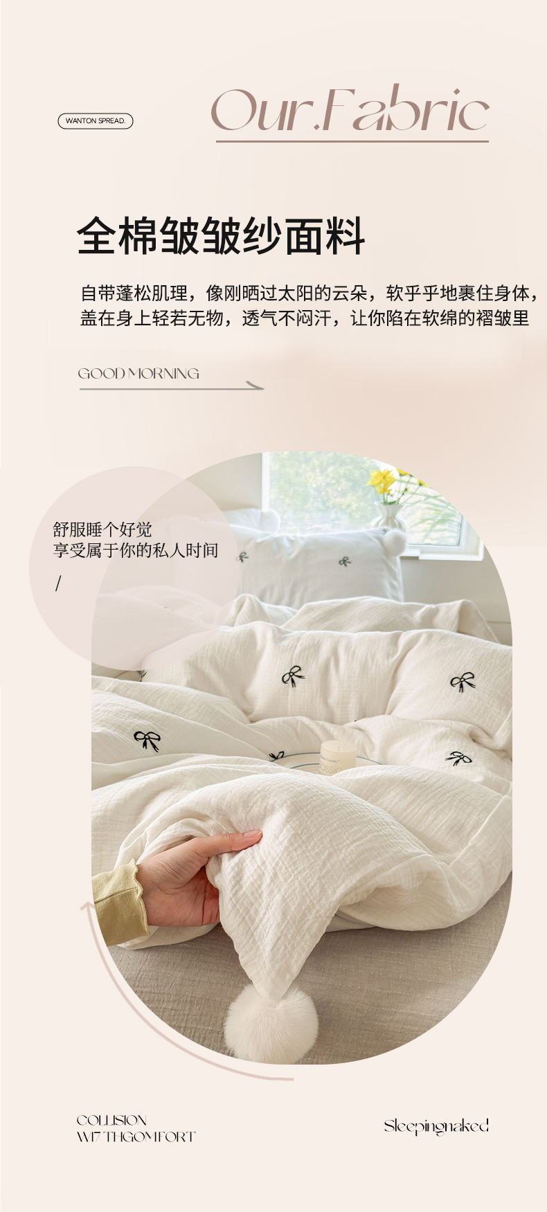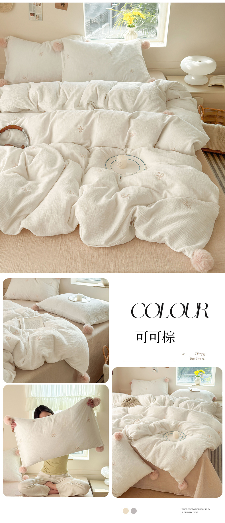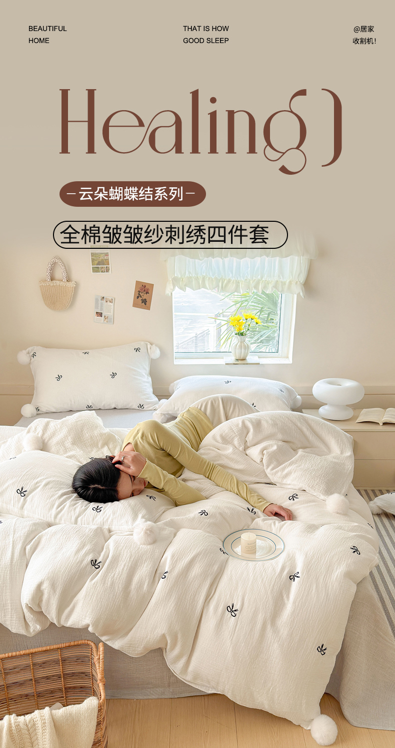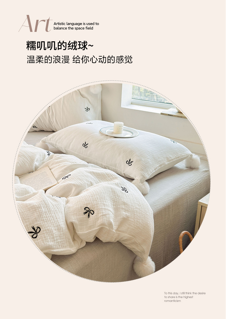 当前位置: 91家纺网 > 商品网购 > 床品套件 > 四件套 > 全棉普通四件套 > 木楌家居 2026年新款全棉纯棉皱皱纱四件套-云朵蝴蝶结系列 云朵蝴蝶结-雾夜黑