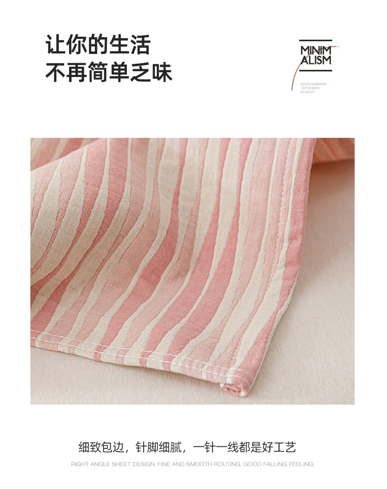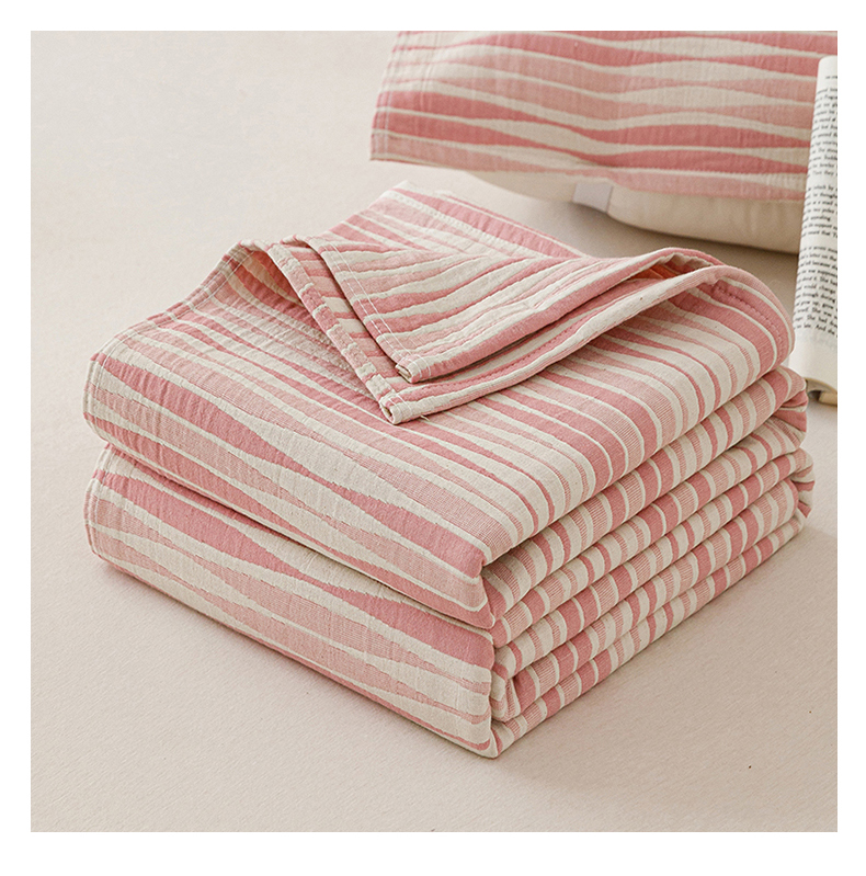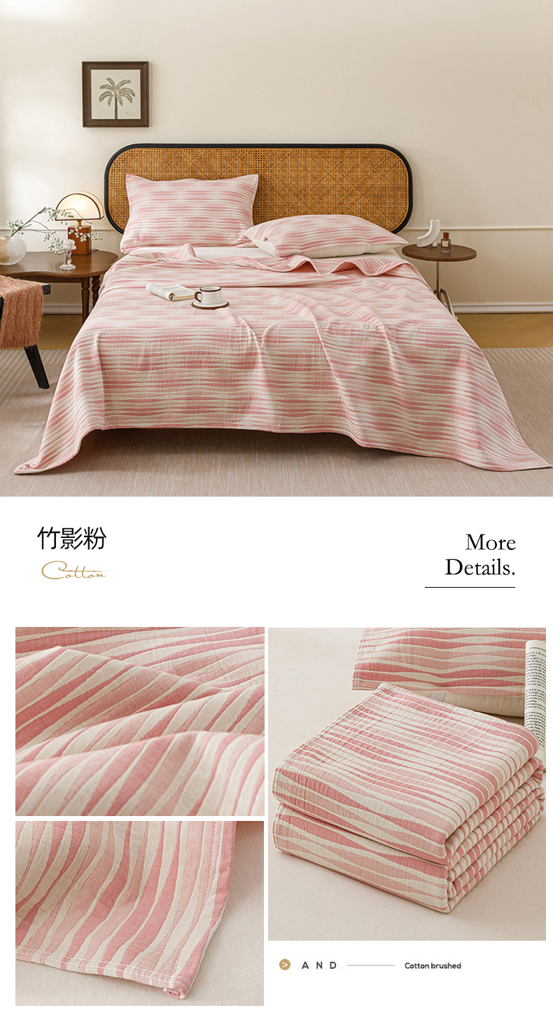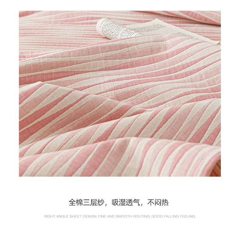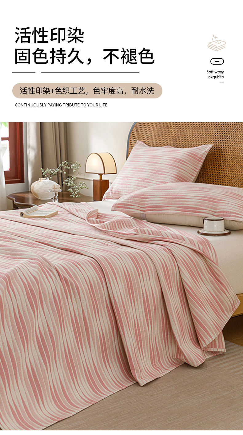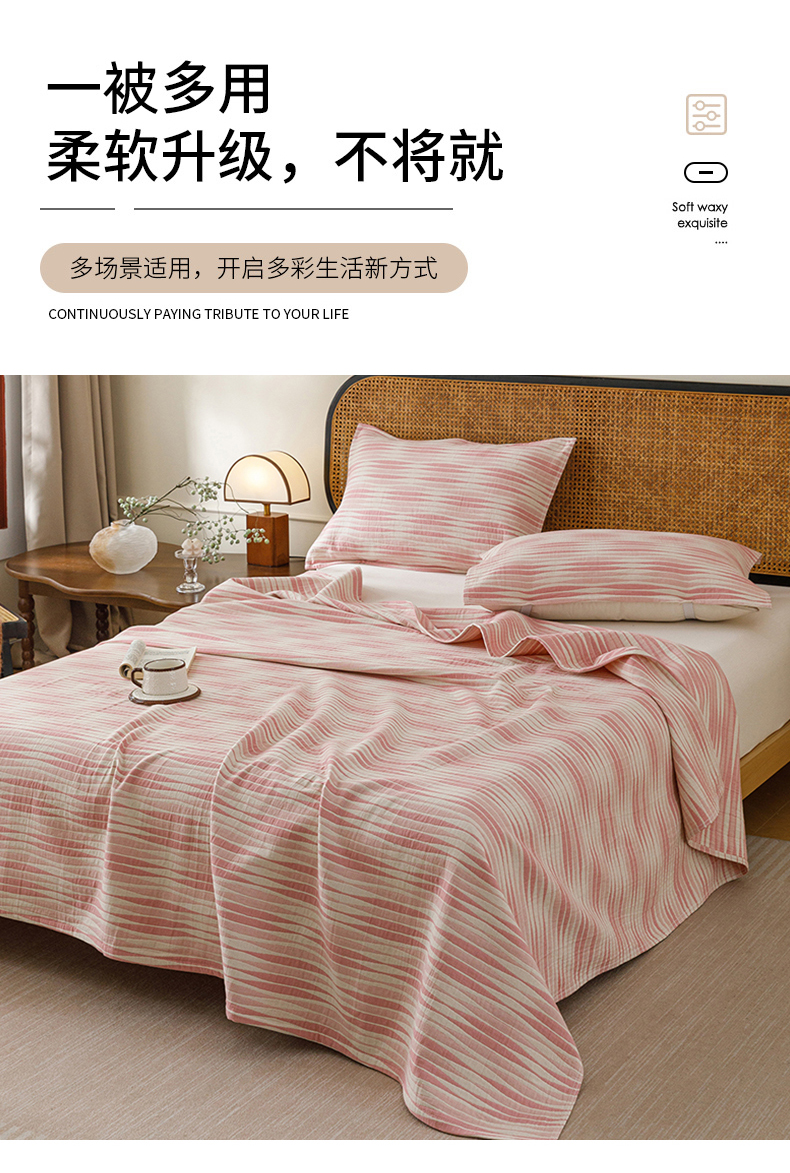悦然毛巾被 2026新款条纹全棉纯棉色织三层纱毛巾被休闲盖毯毯子 竹影粉