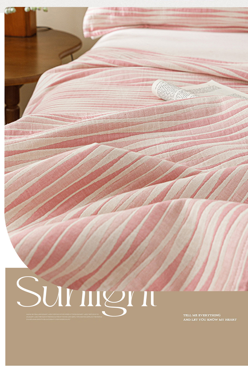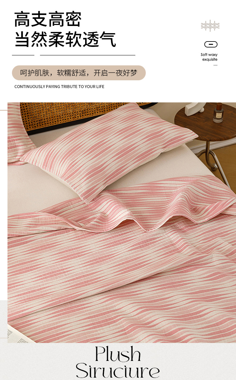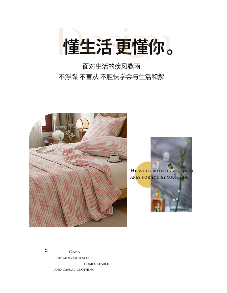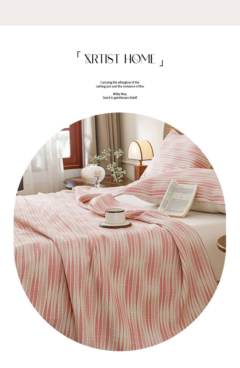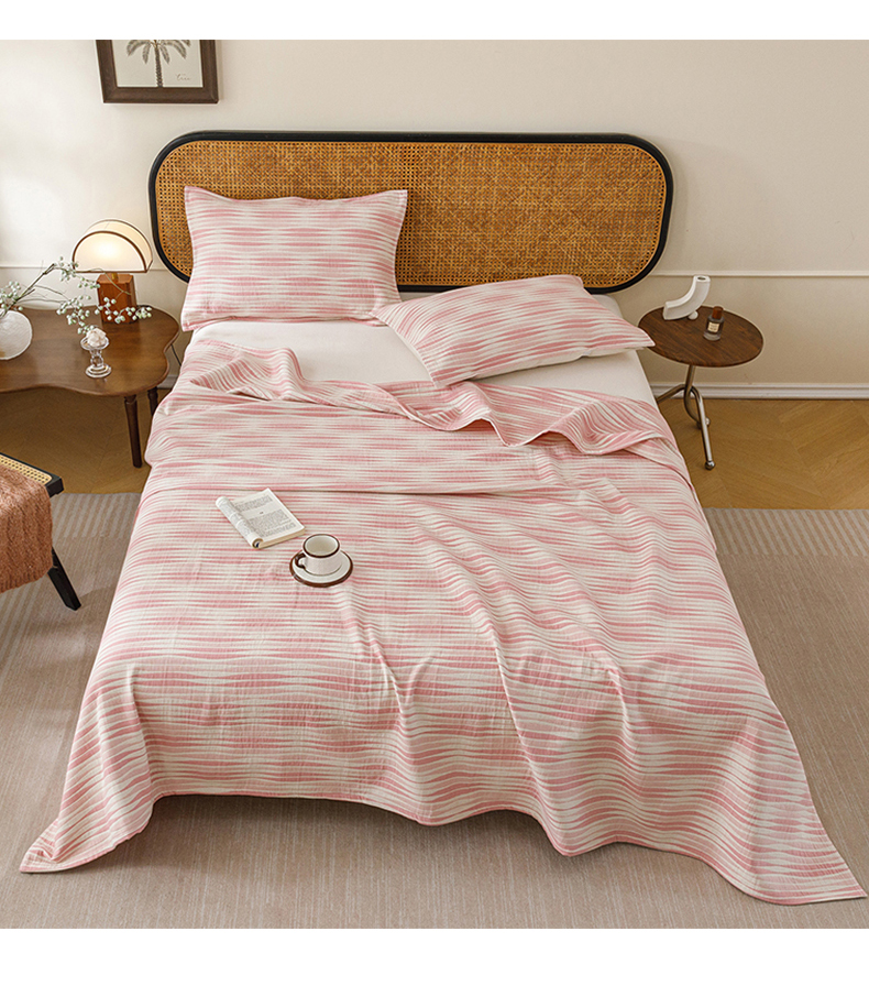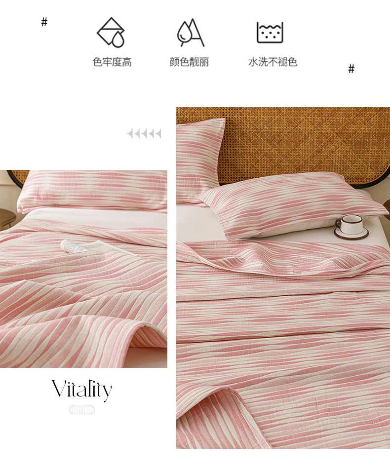 悦然毛巾被 2026新款条纹全棉纯棉色织三层纱毛巾被休闲盖毯毯子 竹影粉