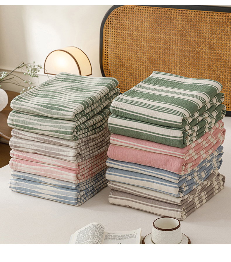 (总)悦然毛巾被 2026新款条纹全棉纯棉色织三层纱毛巾被休闲盖毯毯子,闲夏粉,闲夏灰,闲夏蓝,闲夏绿,竹影粉,竹影灰,竹影蓝,竹影绿,组合图仅供展示不可下单
