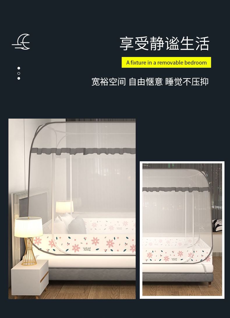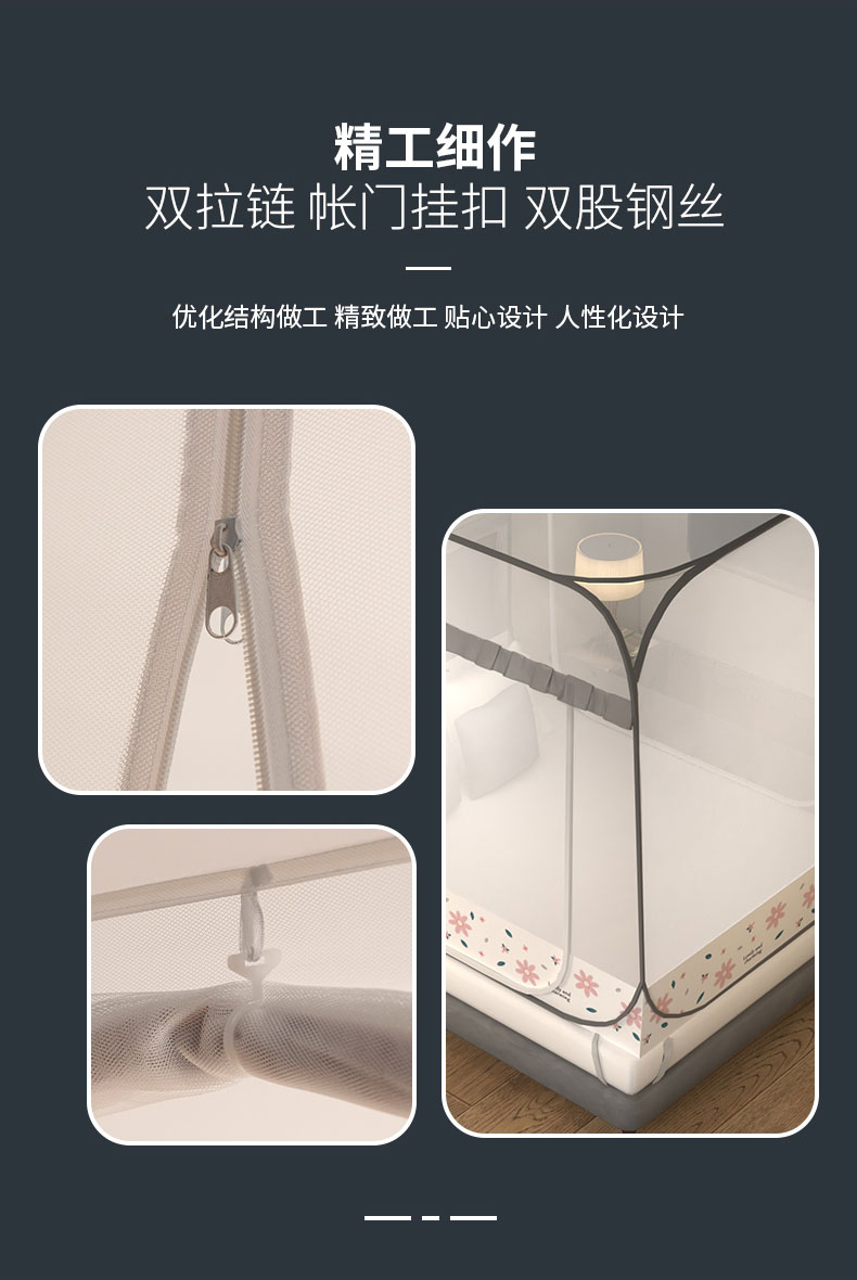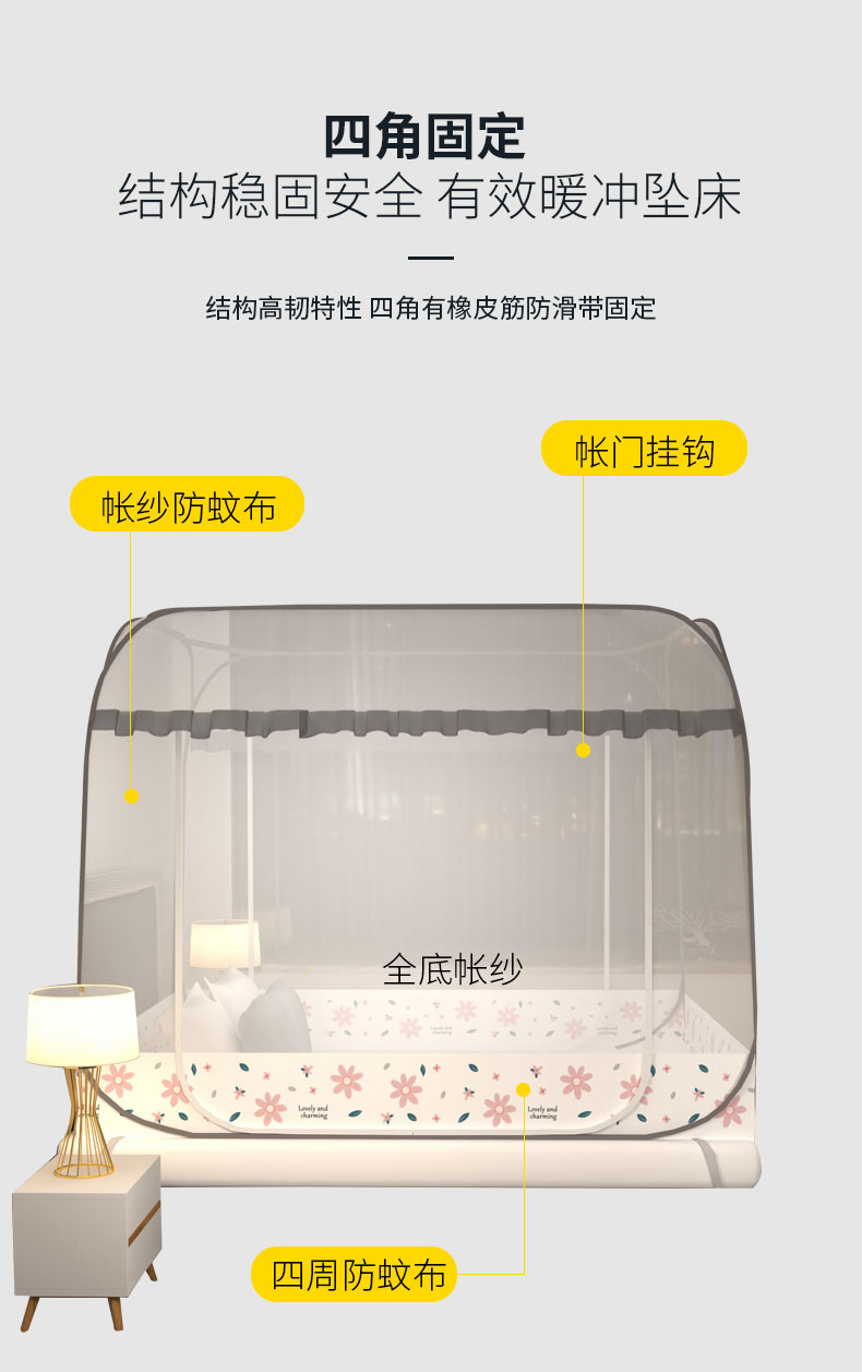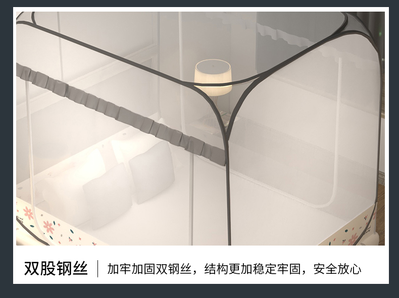 商品名称:青竹苑 2026新款免安装大顶花边款魔术蚊帐 加密灰